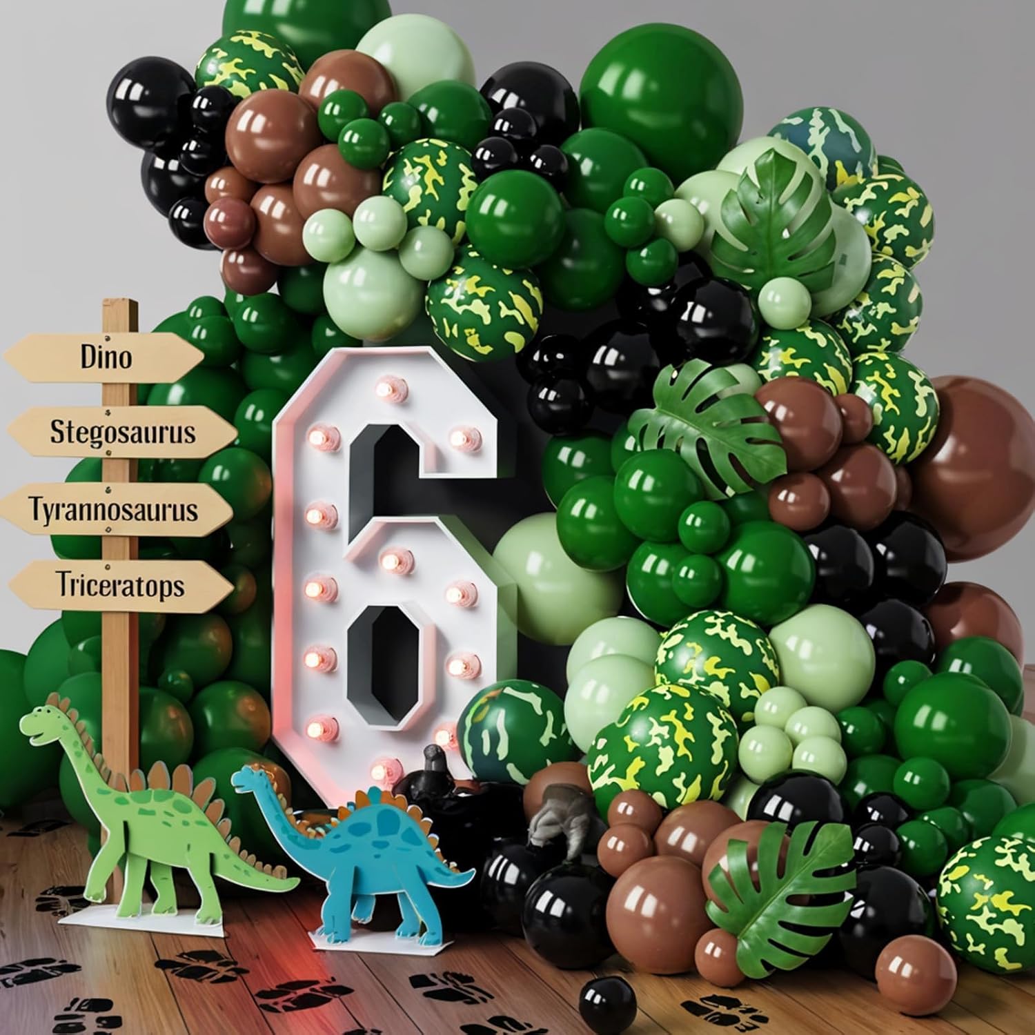 - 12 Inch Green Brown Balloon Set: 5 x vintage bean green balloons, 5 x deep green balloons, 5 x camouflage print balloons, 5 x vintage cocoa balloons, 5 x black balloons, and 5 x metallic gold balloons, along with 1 x green ribbon. This earthy combination of green and brown tones is suitable for adding a natural touch to any outdoor event or celebration.