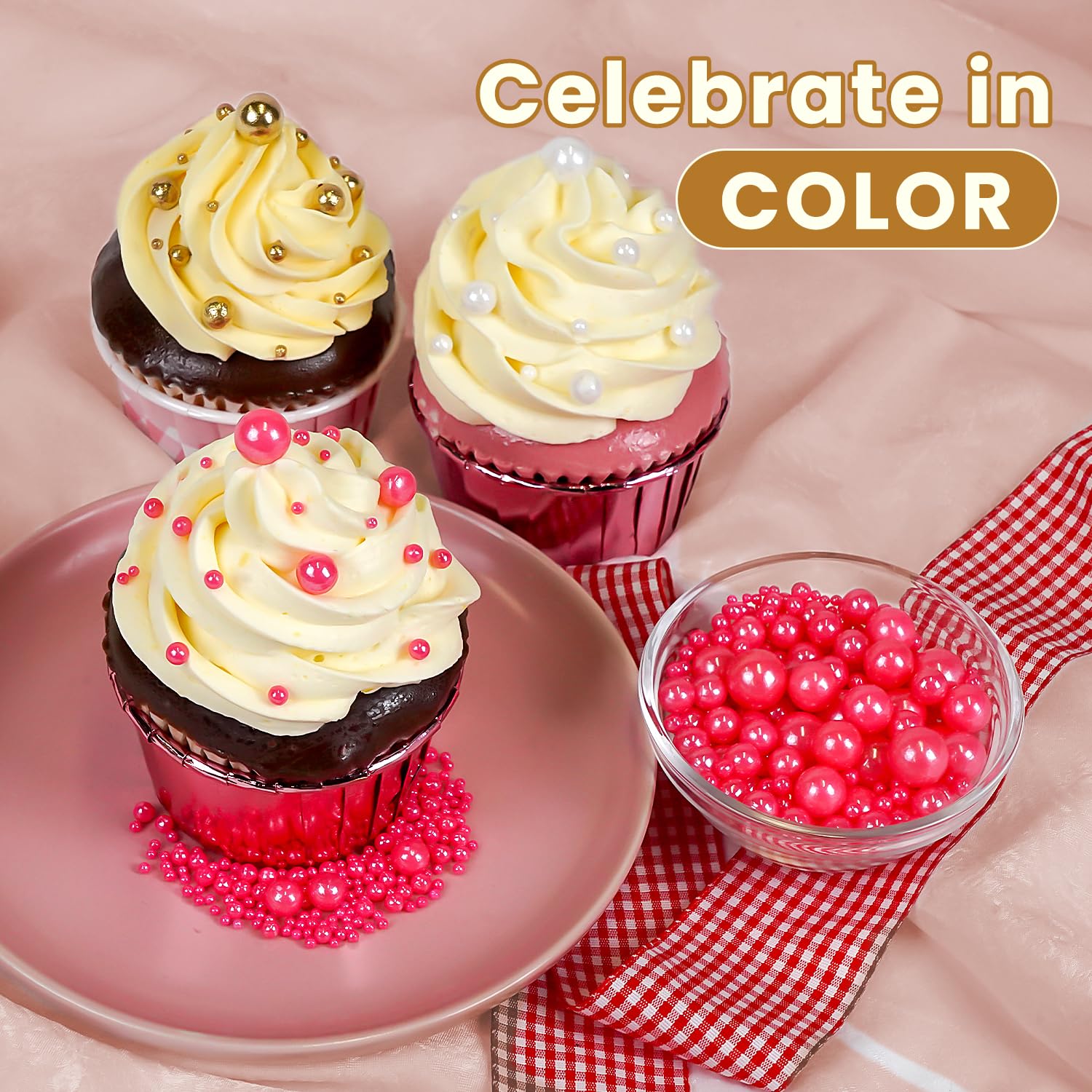 - Safe & Certified Pearls: Food-grade pink pearls sugar sprinkles made with non-GMO ingredients, 0% preservatives. Kosher/Halal-certified in facilities with no allergens (soy/nut/dairy). Tamper-proof sealed for safety.