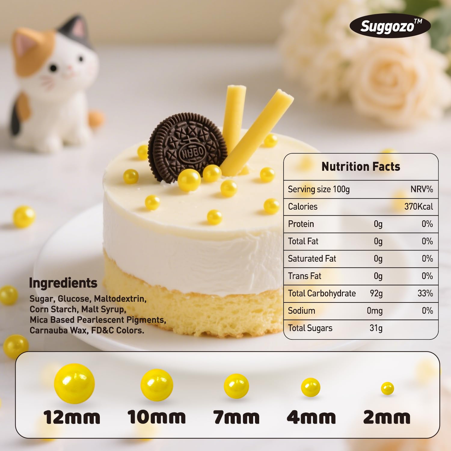 - Safe & Certified Pearls: Food-grade yellow pearls sugar sprinkles made with non-GMO ingredients, 0% preservatives. Kosher/Halal-certified in facilities with no allergens (soy/nut/dairy). Tamper-proof sealed for safety.