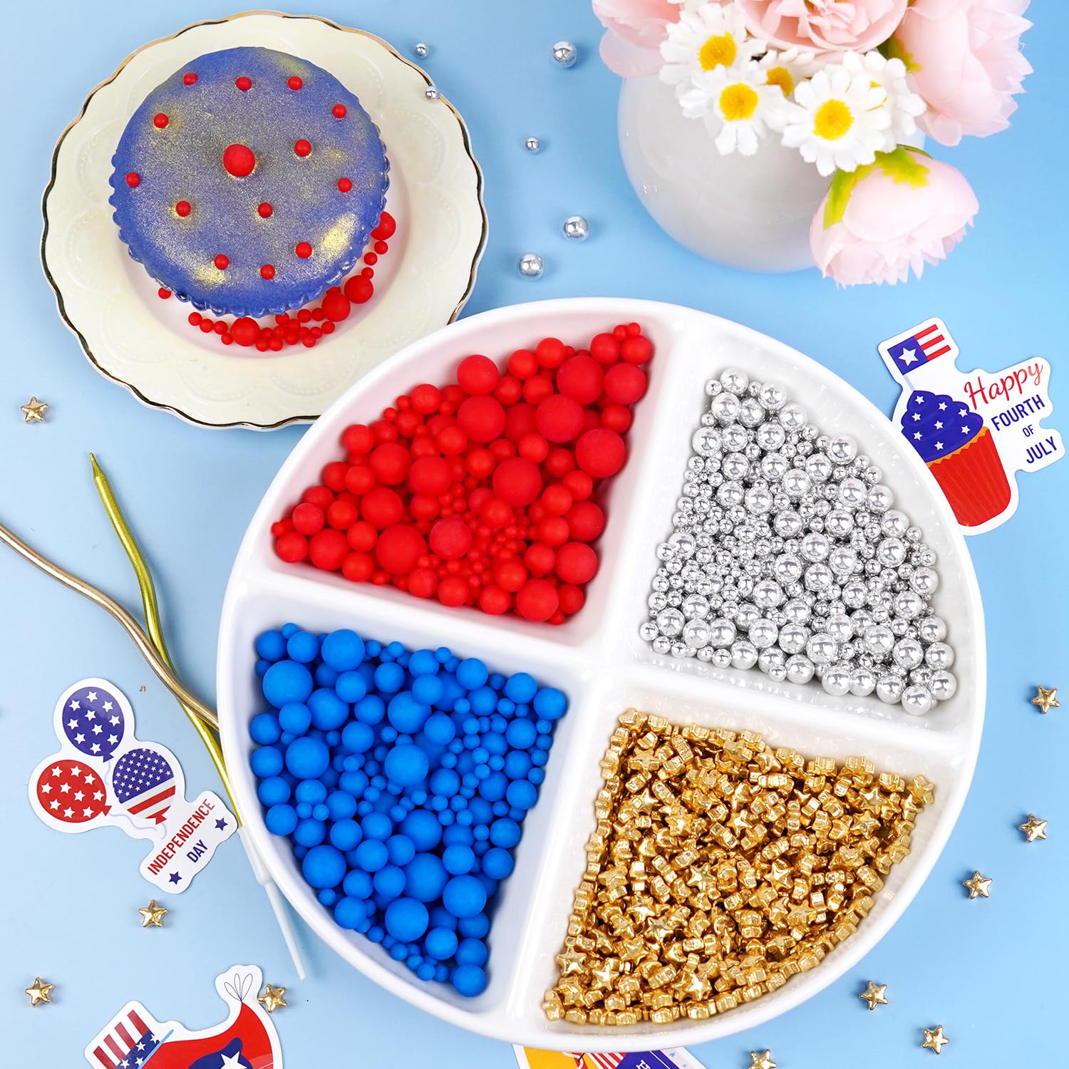 Dazzjoy 4th of July, Patriotic Sprinkles, Red Blue Silver Gold Sprinkles, Food Grade, Edible Pearls for Cake Decorating, 150g/5.29oz, Cake Decoration & Cupcake Topper