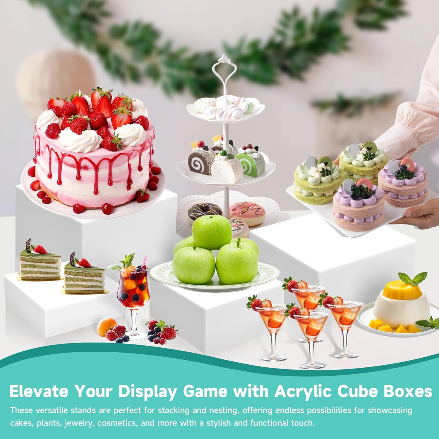 - Elevate Your Display Game with Acrylic Cube Boxes: These versatile stands are perfect for stacking and nesting, offering endless possibilities for showcasing cakes, plants, jewelry, cosmetics, and more with a stylish and functional touch.