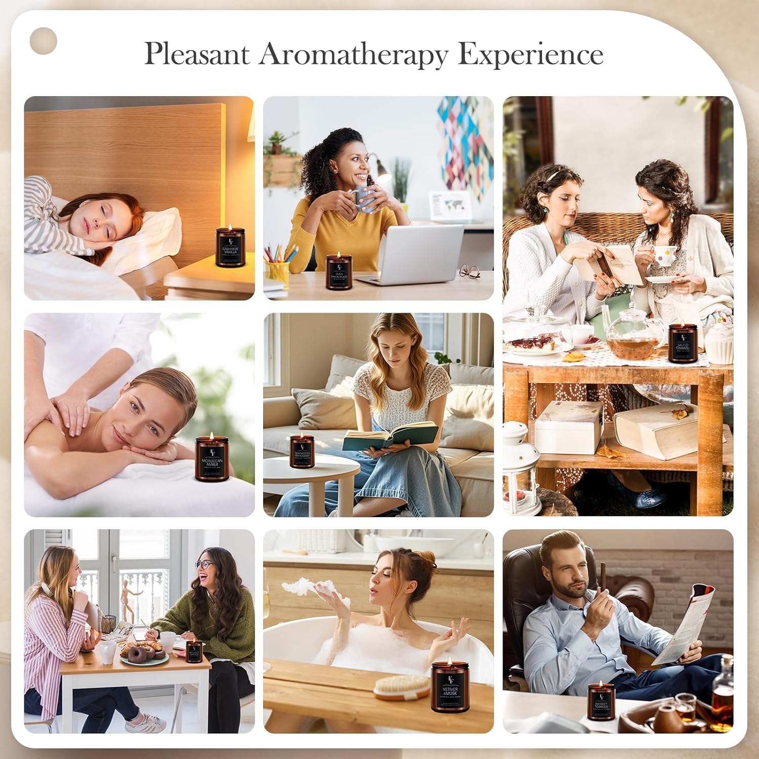 - Perfect for Any Setting: Whether it's a cozy night in, a festive gathering, or a romantic dinner, these scented candles elevate the atmosphere. With captivating scents like Vetiver Musk and Bergamot Oakmoss, providing a sensual and aromatic experience that leaves a lasting impression on you and your guests