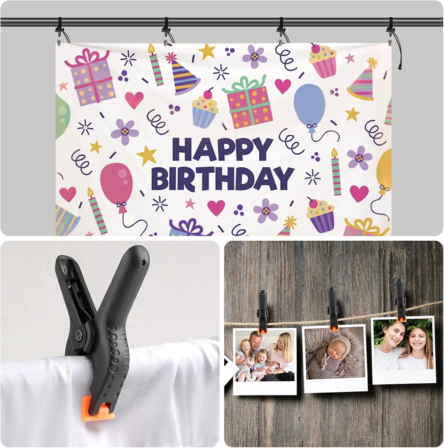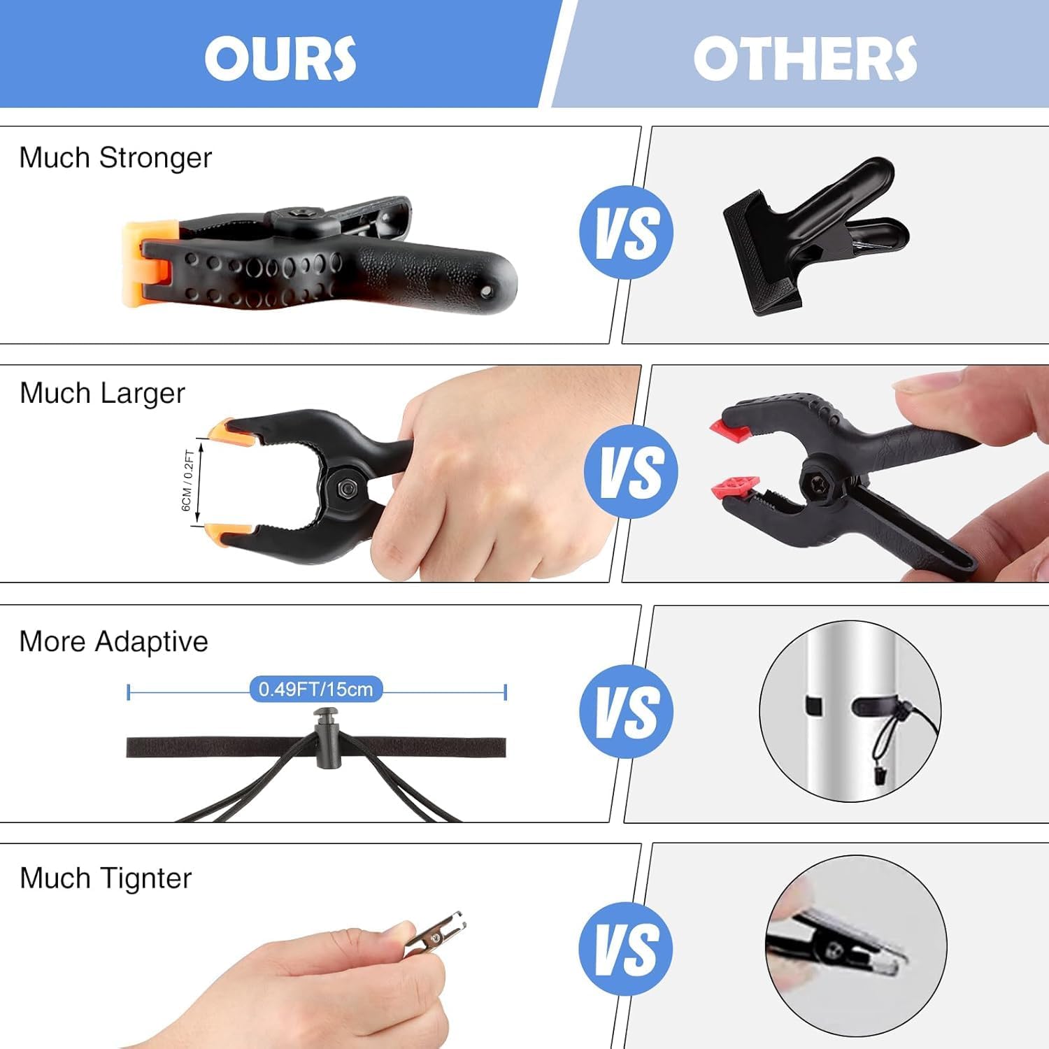 - 【PACKAGE CONTENT】: 6 pcs Heavy Duty Spring Clamps, 6 pcs Backdrop Clips. The spring clip can firmly fix the photographic fabric on the background fabric holder to prevent the background fabric from slipping. The backdrop clamp clip holds the background fabric tight and reduces creasing