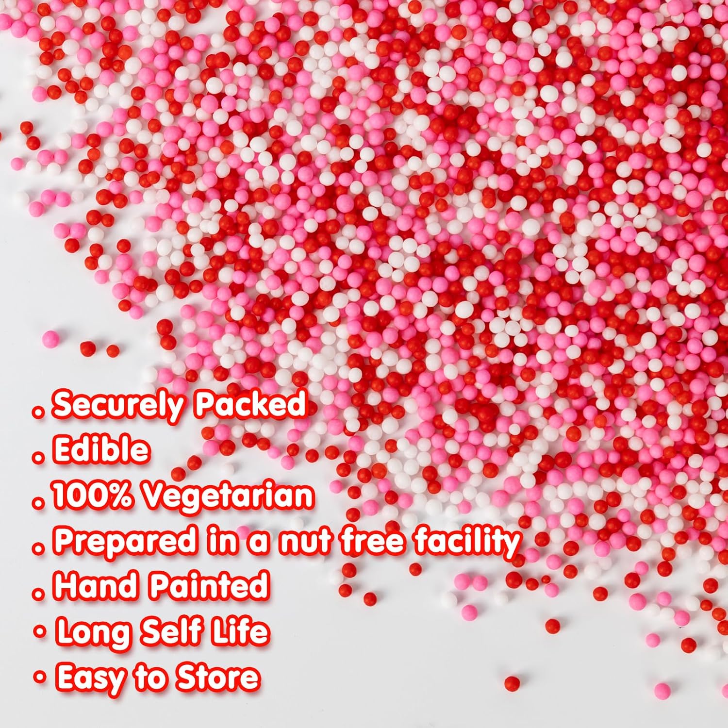 - Festive & Vibrant Design :Add a burst of color to your baked goods with these charming pearl sprinkles, perfect for Valentine's Day, Anniversaries, Weddings, Mother's Day or any celebration that calls for a touch of love.