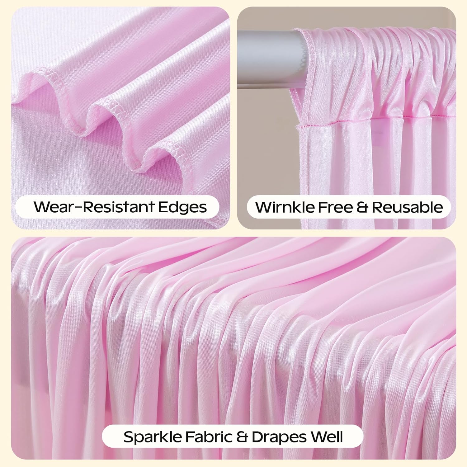 - Pink Shimmer Backdrop Curtain Package Included & Easy to Install:The package included 2 Panels 5x10ft backdrop curtain,which can be arranged side by side to create a 10x10ft backdrop or used separately.Install way: Insert a rod or hang it on walls, ceilings, or temporary frames.