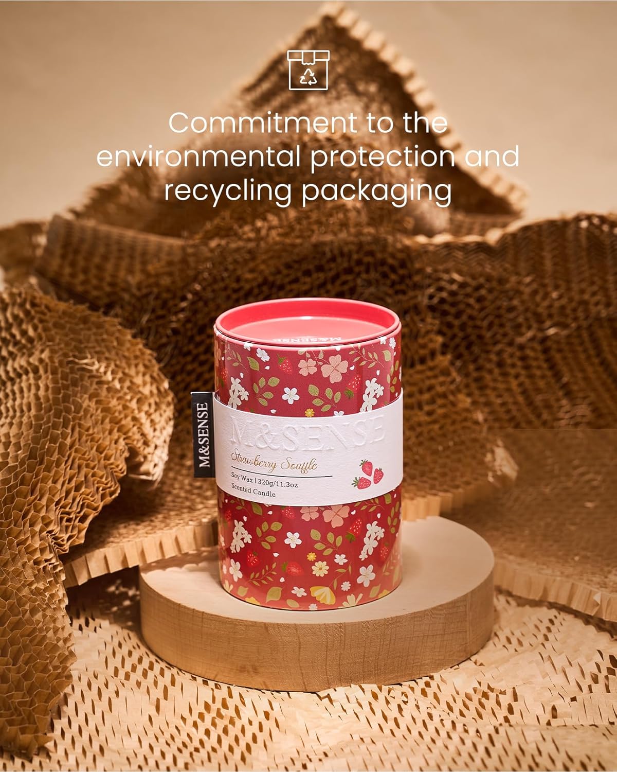 M&SENSE Strawberry Souffle Scented Candle, Medium Jar Candle 11.3oz Natural Soy Wax for Home Scented, Floral Candles Gift for Spring Holiday, Up to 70 Hours Burning Long-Lasting Fragrance