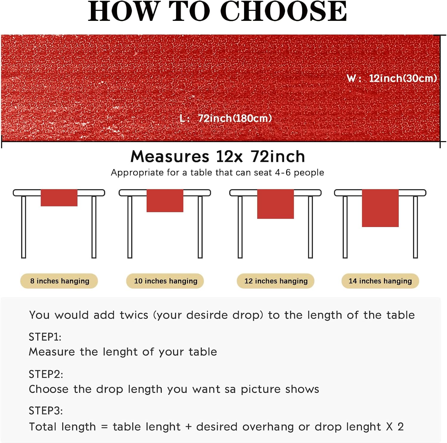 - Package Include: Each sequin table runner measures 12" x 72", total 10 pieces, perfect for a table that seat 4-6 people. The sequin table runner is appropriate for rectangle or round tables.