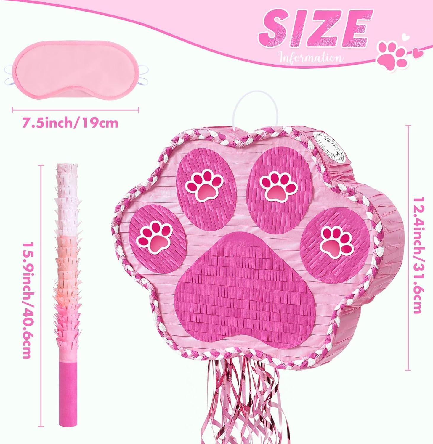 WERNNSAI Pink Dog Paw Pinata - Dog Pinata Pet Theme Party Games Pink Girl Style Puppy Paw Party Decorations Animal Party Supply for Kids Birthday with Blindfold
