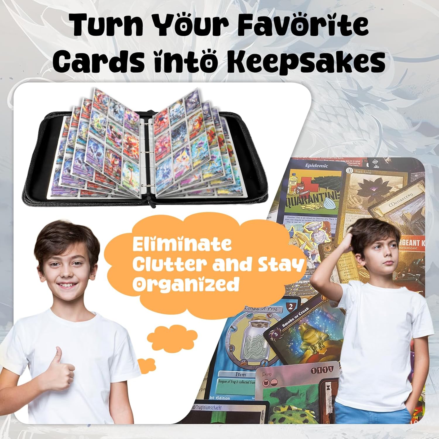- High-Capacity Reversible Storage : 50 pages (18 cards per page) hold up to 900 cards, with reversible design for vertical. Expandable slots fit thick booster packs.