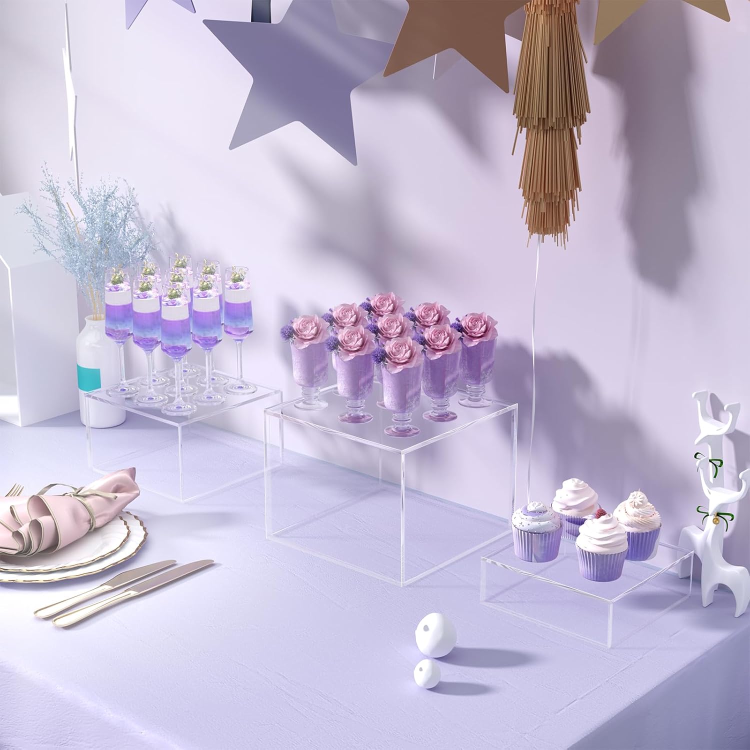 - 【Wide Applications】PITBVO buffet risers could be used as cake stand, jewelry risers, figures display stand, catering displays, makeup organizer and risers for décor. Different acrylic cube box height organize buffet table or dessert table well and create beauty look and good memories