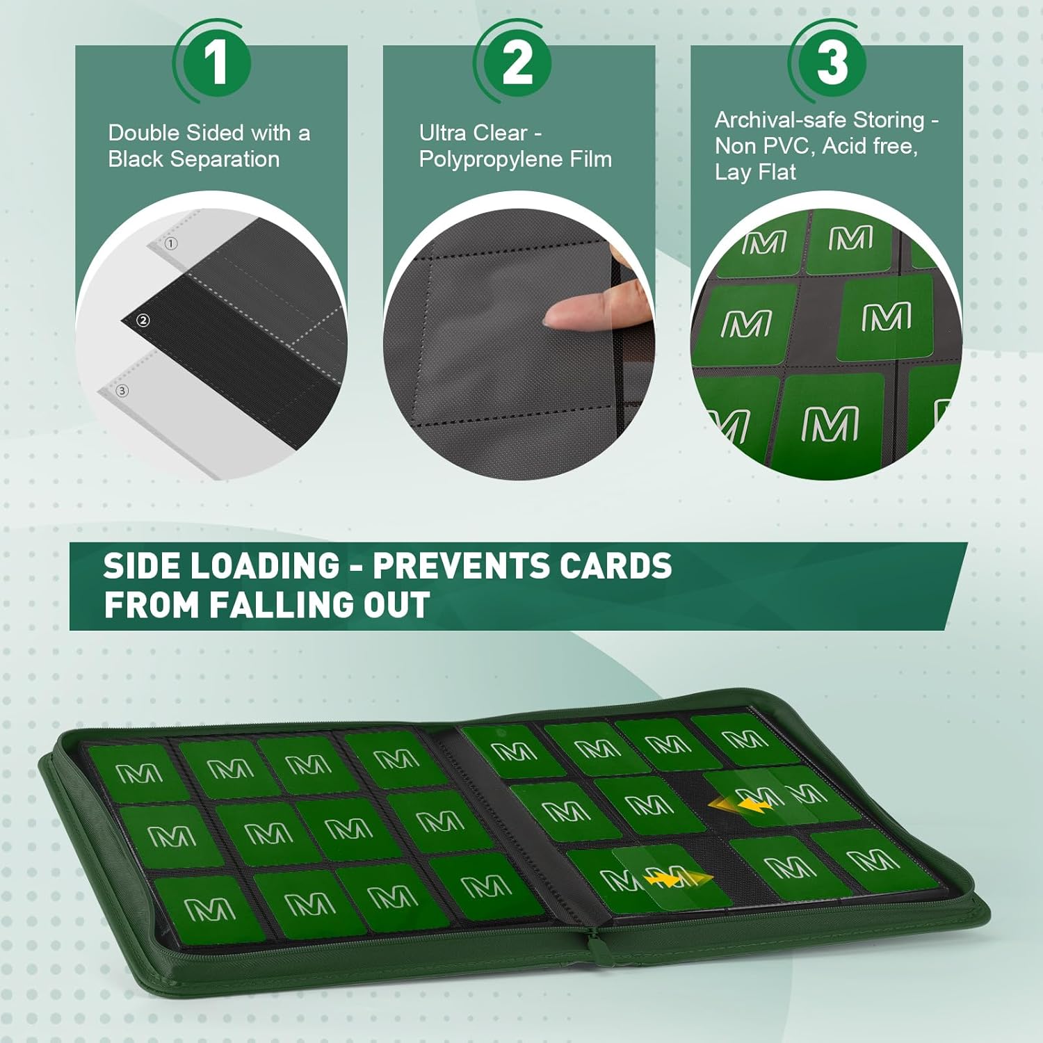 - 【PREMIUM QUALITY MATERIAL】 Card Binder is designed with textured PU leather material finish which is comfortable.this trading card binder is not only stylish but also ensures durability and long-lasting performance.The waterproof and durable card sleeves provide extra protection for your cards, keeping them safe from spills, moisture, and everyday wear and tear.