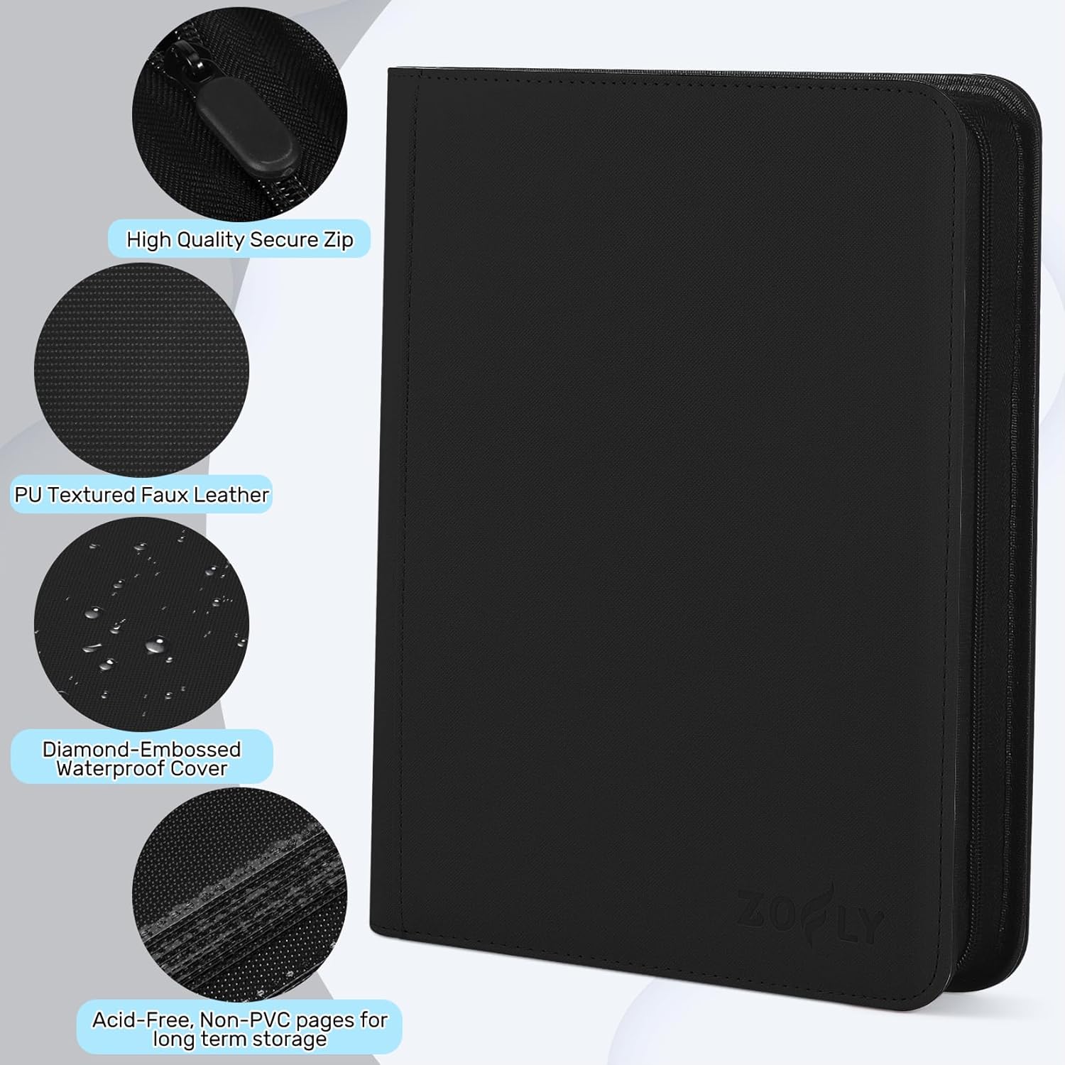 Trading Card Binder 9 Pocket, Zofly Zipper Card Collection Binder Album, Sturdy 540 Side-Loading Card Folder Holder for MTG, TCG, Sports Cards, Game Cards, Black