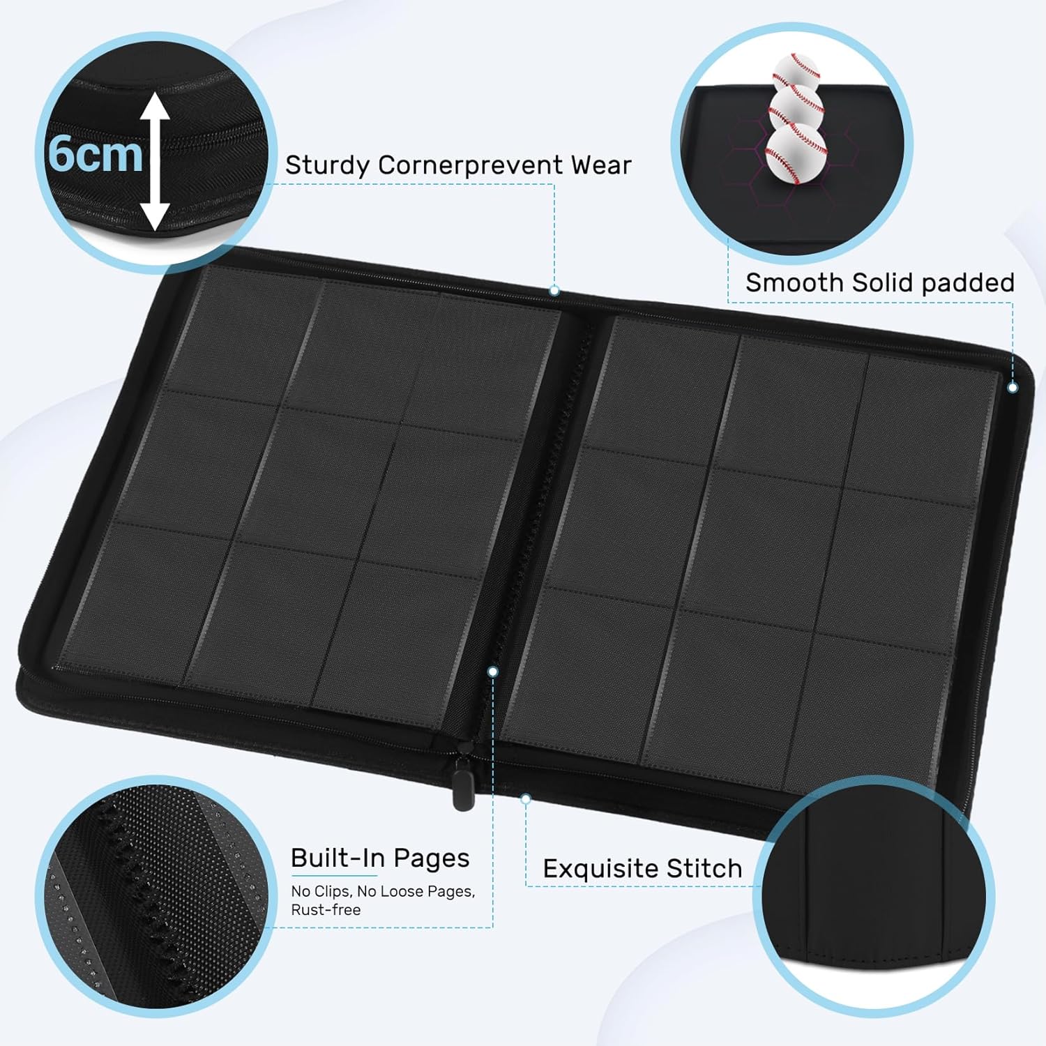 - Maximum Protection: Designed with thickly padded, ultra rigid exterior case to prevent card bending, and durable zipper for further protection from dust and dirt. This water-resistant card binder with premium PU textured faux leather offers trusted durability and superior security for your cards.