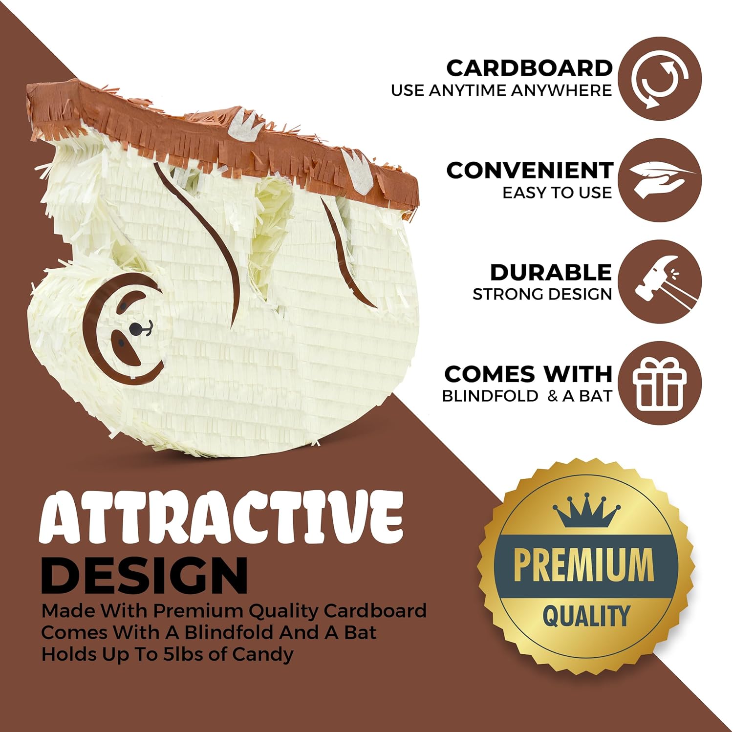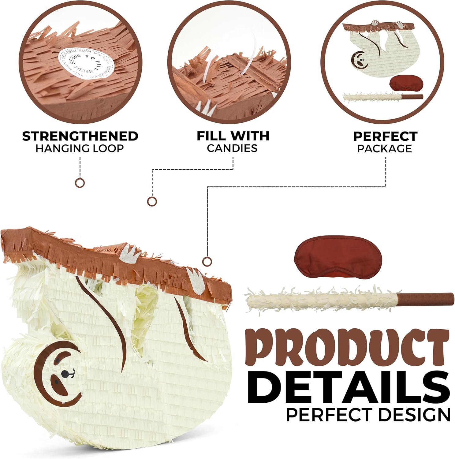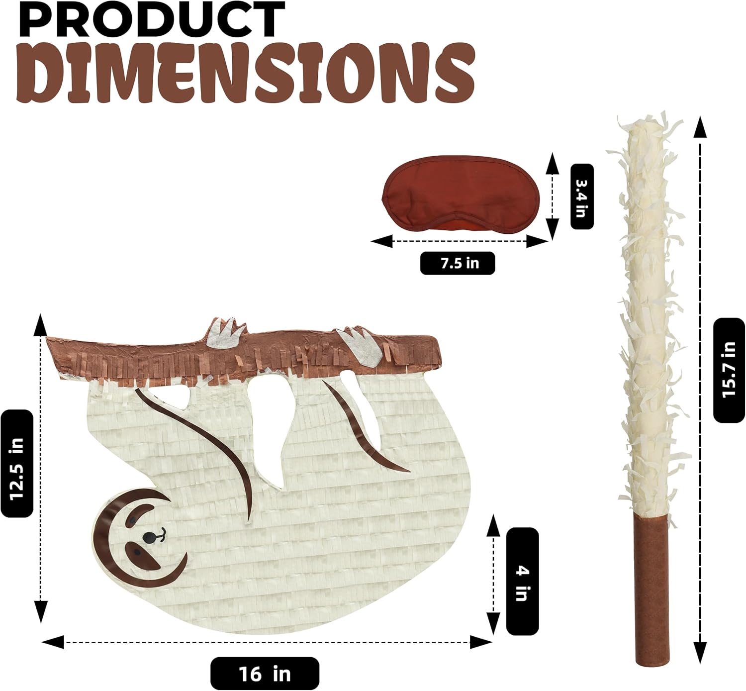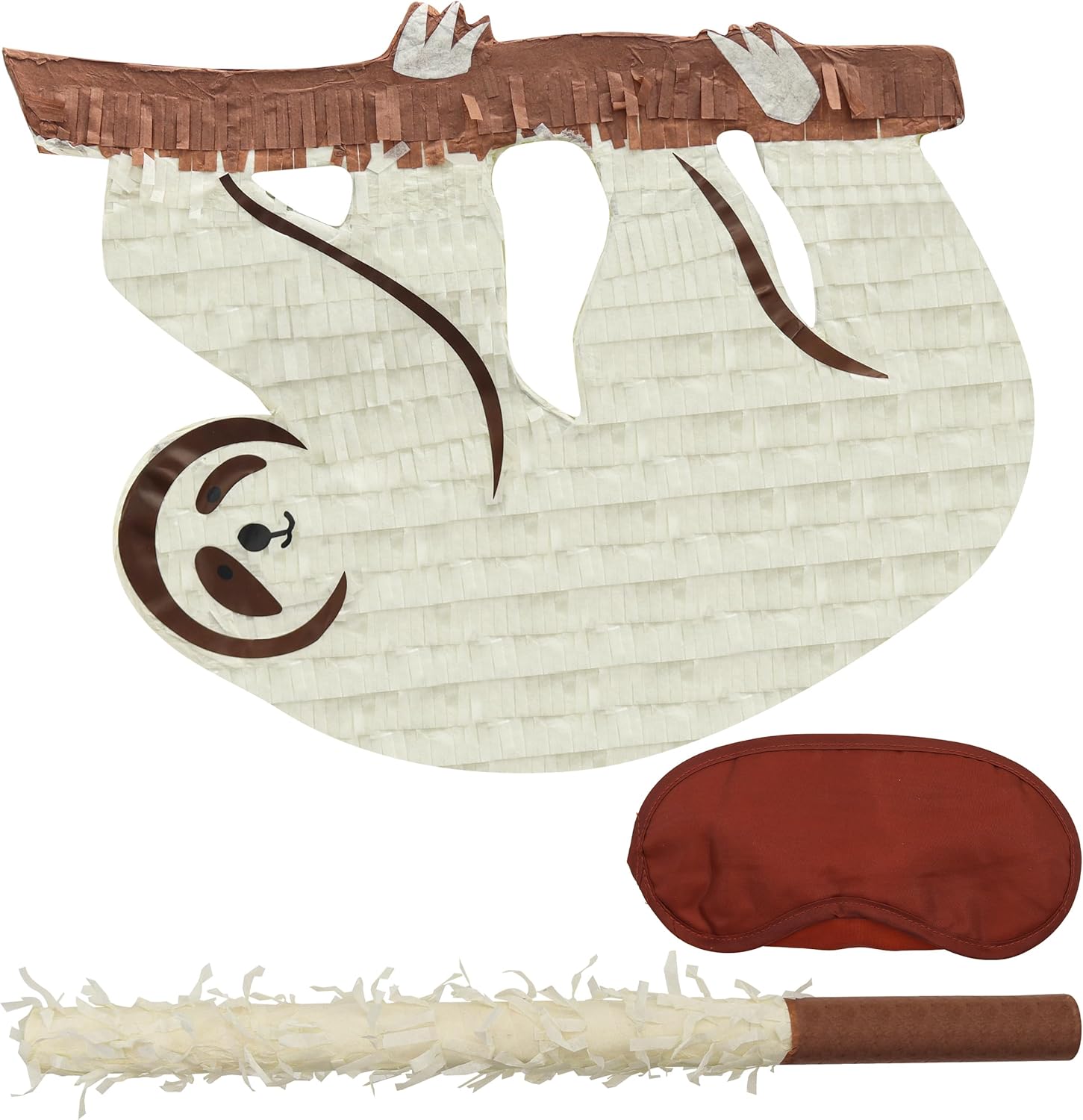 Sloth Pinatas Bundle with a Blindfold and Bat (16x12.5x4 Inches), Perfect for Birthday Parties, Farm Animal Theme Parties, Decorations