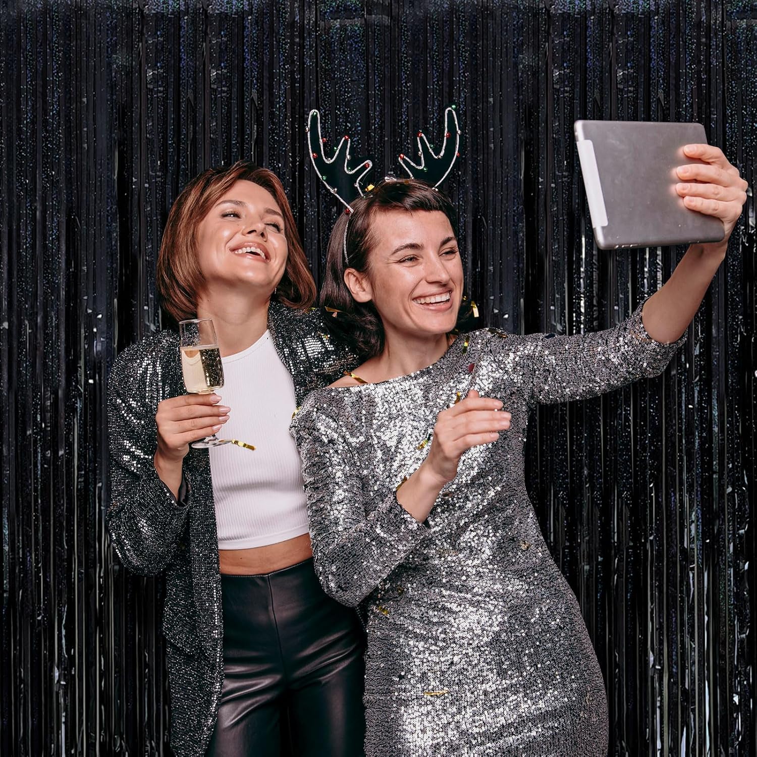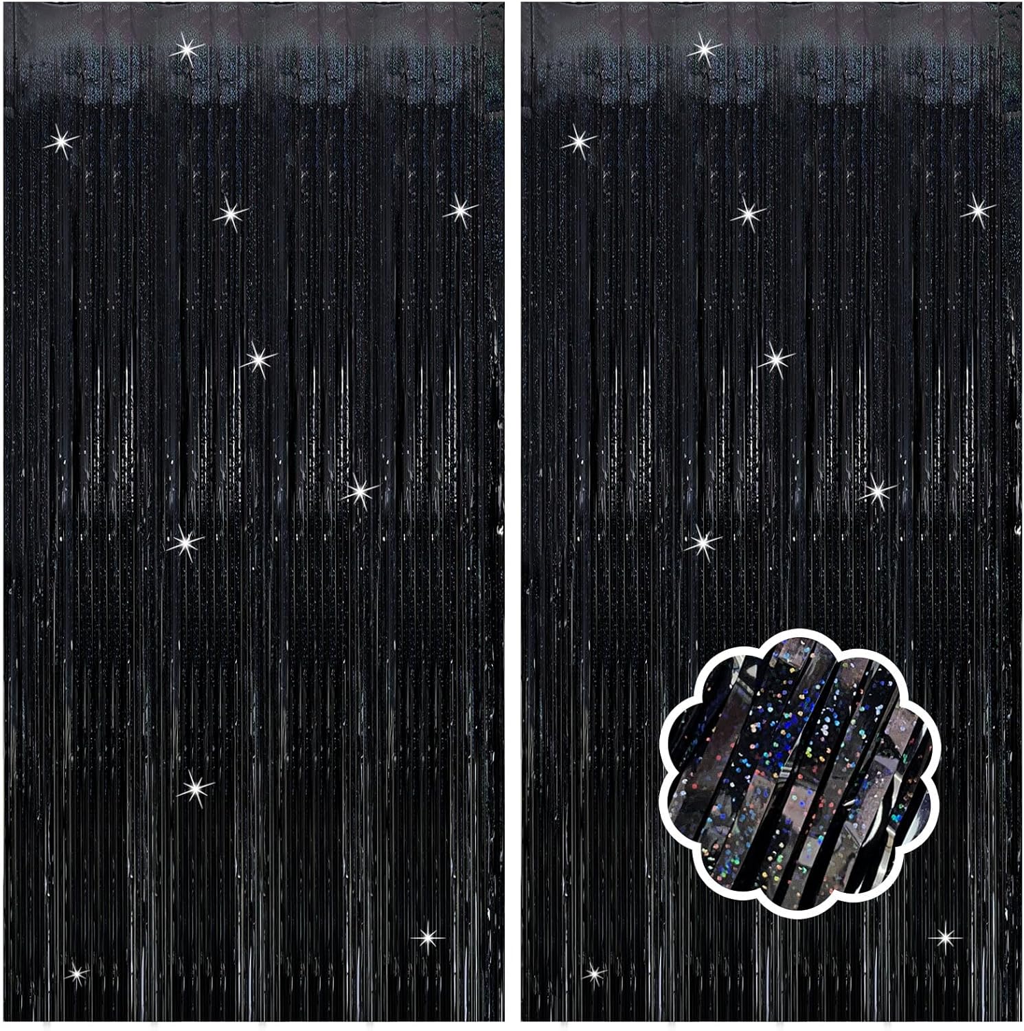 - Black Steamers Set (2-Pack): Each dazzling curtain measures 3.28ft x 6.56ft – perfect for doors, walls, or photo booths! These extra-long foil streamers instantly transform any space into a party-ready celebration zone. Mix, layer, and customize your decor for the best results.
