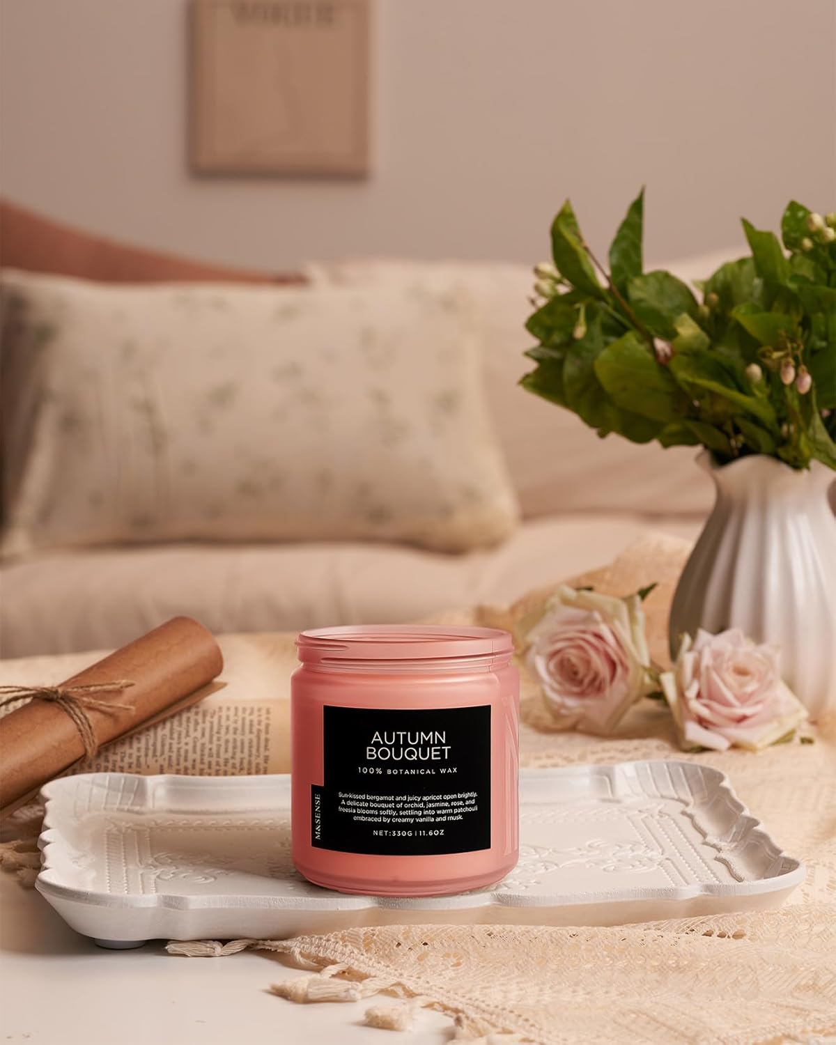 M&SENSE Fall Candle Autumn Wreath Scented, Large 11.6oz Natural Soy Wax 70 Hours Burn Time Clean Non Toxic Candle Classic 2 Wicks Gifts
