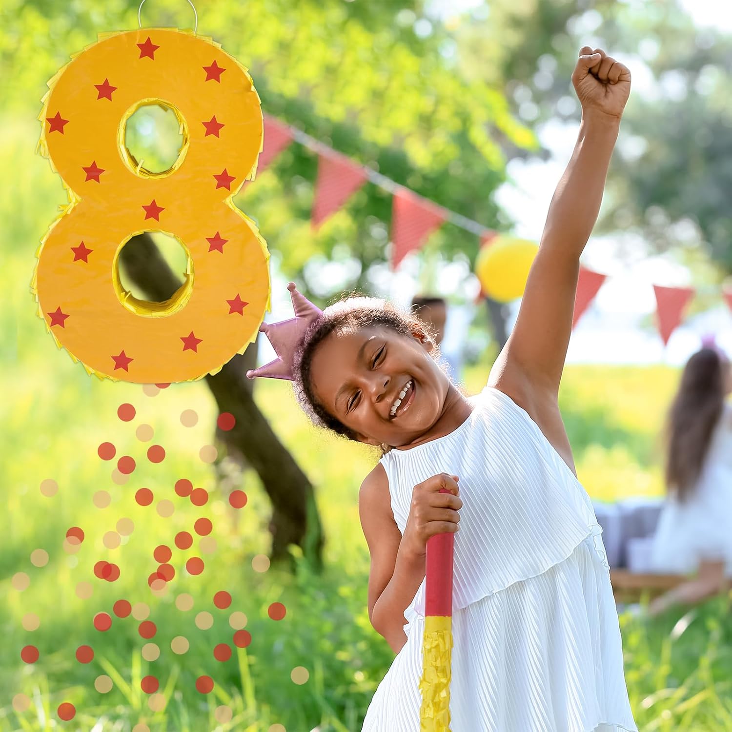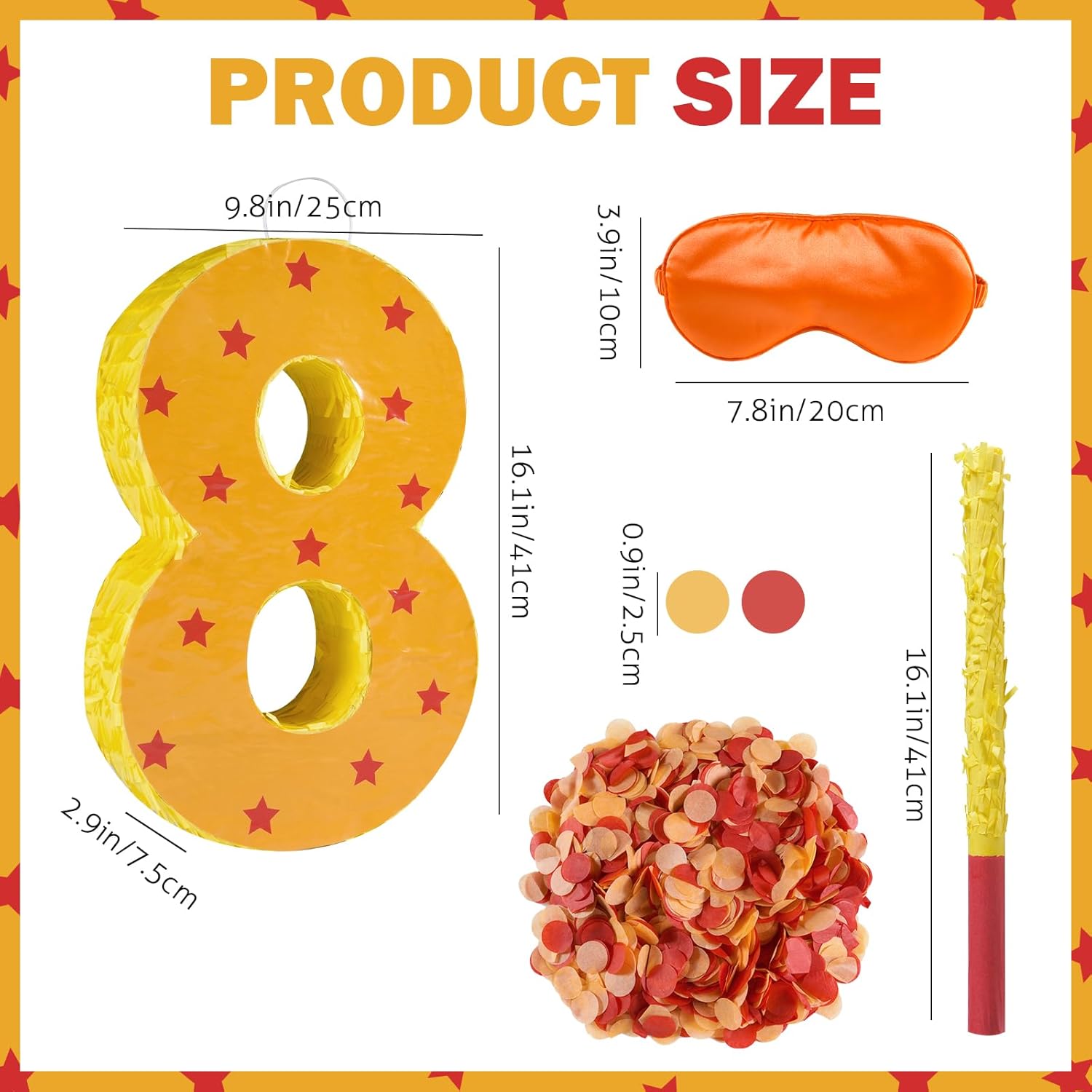- Package Includes: This set includes a orange and red star number 8 Pinata, 30g confetti,a stick, a blindfold.It is very suitable for creating a cheerful party atmosphere for birthday party.