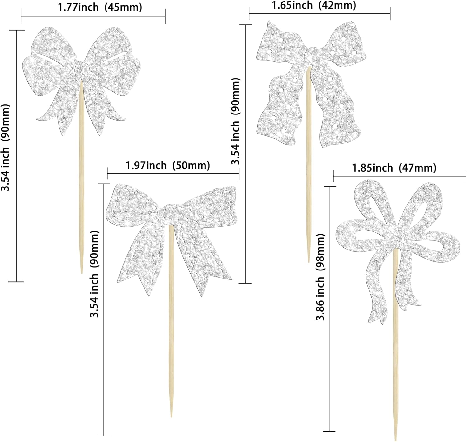 Ephlyn 24pcs Silver Bow Cupcake Toppers for Birthday, Baby Shower, Bridal Shower, Wedding, Bachelorette Party