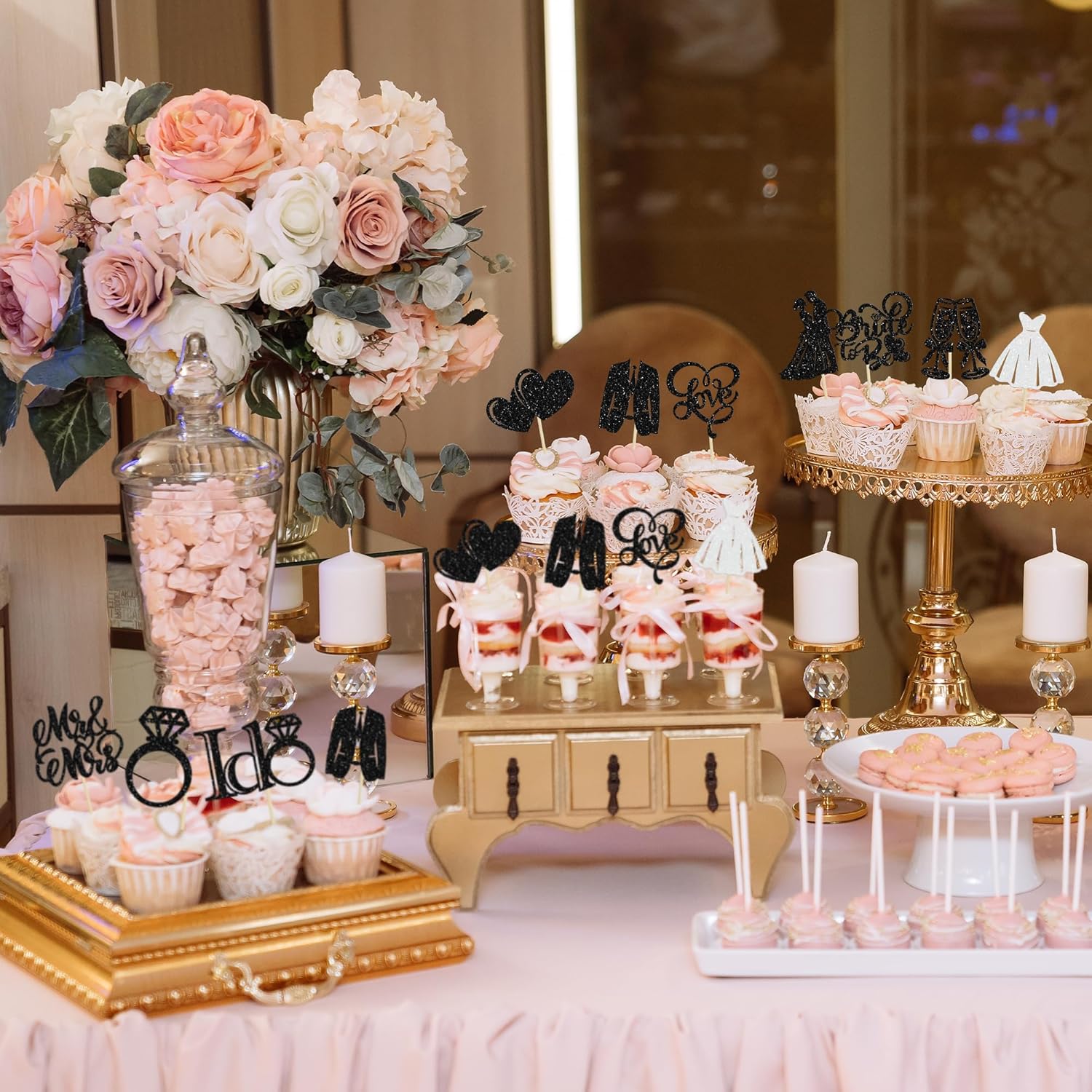 Gyufise 30Pcs Bride to Be Cupcake Toppers Glitter Diamond Ring I Do Love Cupcake Picks Miss to Mrs Bridal Shower Wedding Engagement Bachelorette Cake Decoration Black
