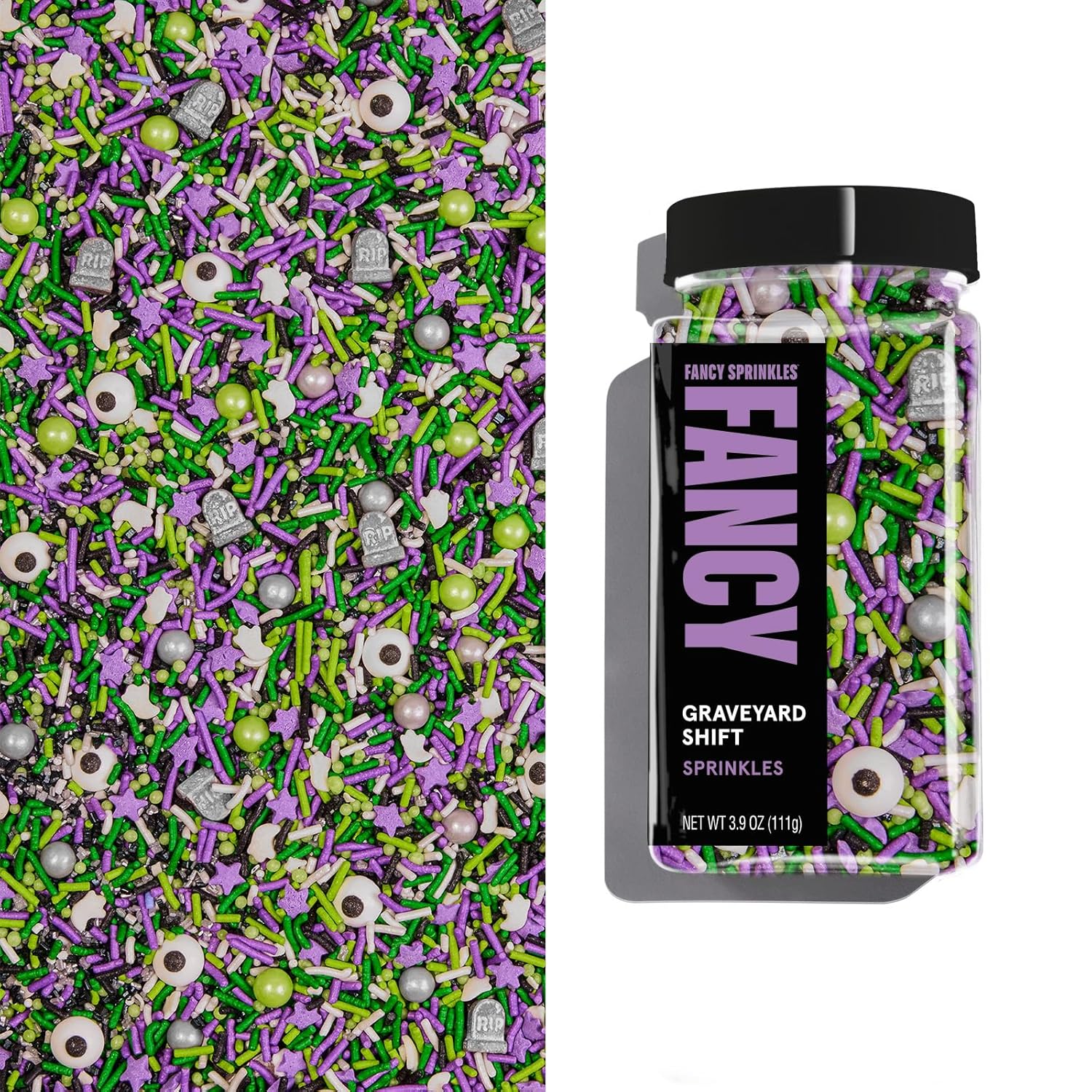 - GRAVEYARD GLAM: This moody Halloween-themed sprinkle blend in purple and green will cast a haunting spell on your treats