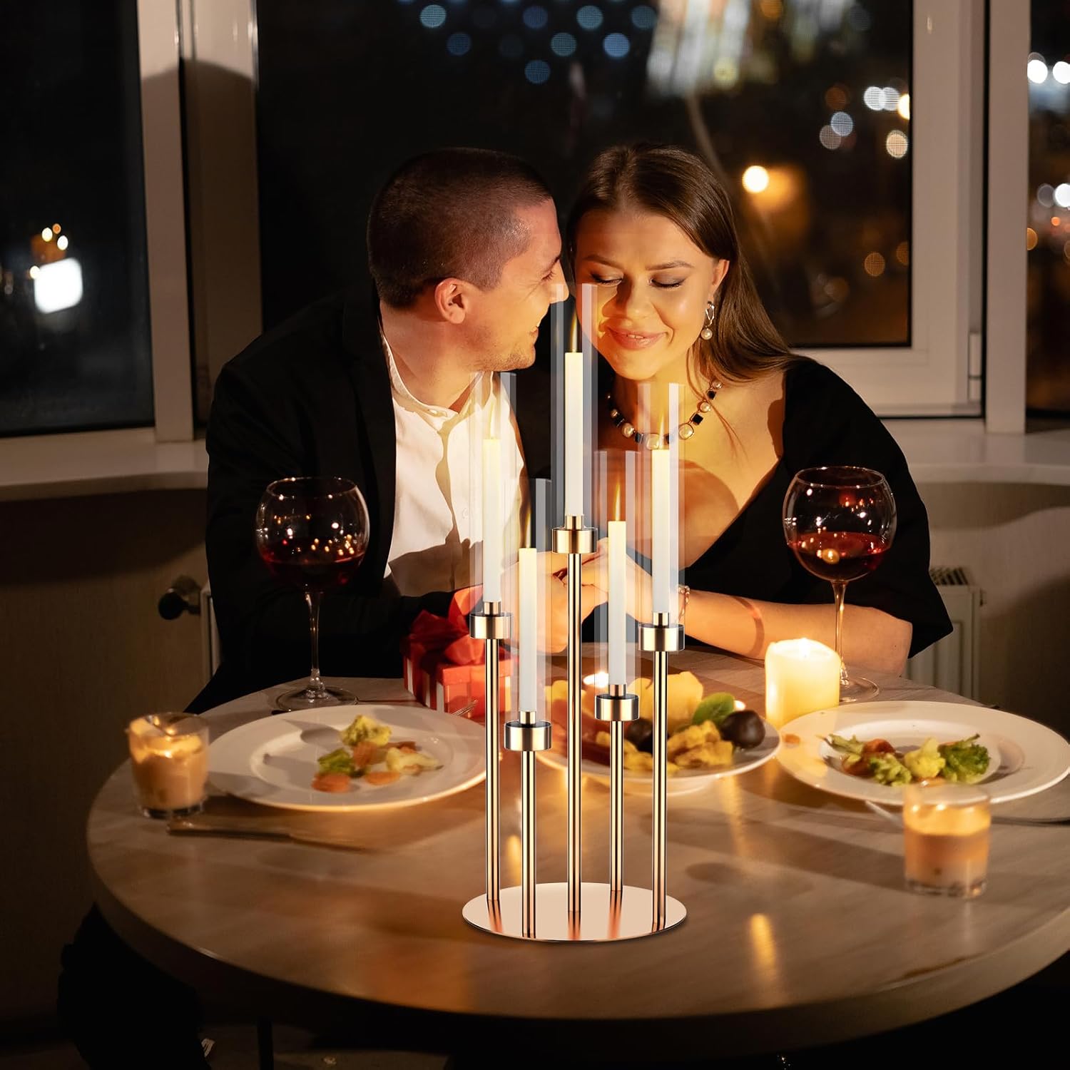 - EASY TO INSTALL: Our gold candle sticks holder is very easy to install, no tools needed, just fix the metal rod to the base, any fix the candle cup, and the installation is done. Suggest to use electronic candles, more safe
