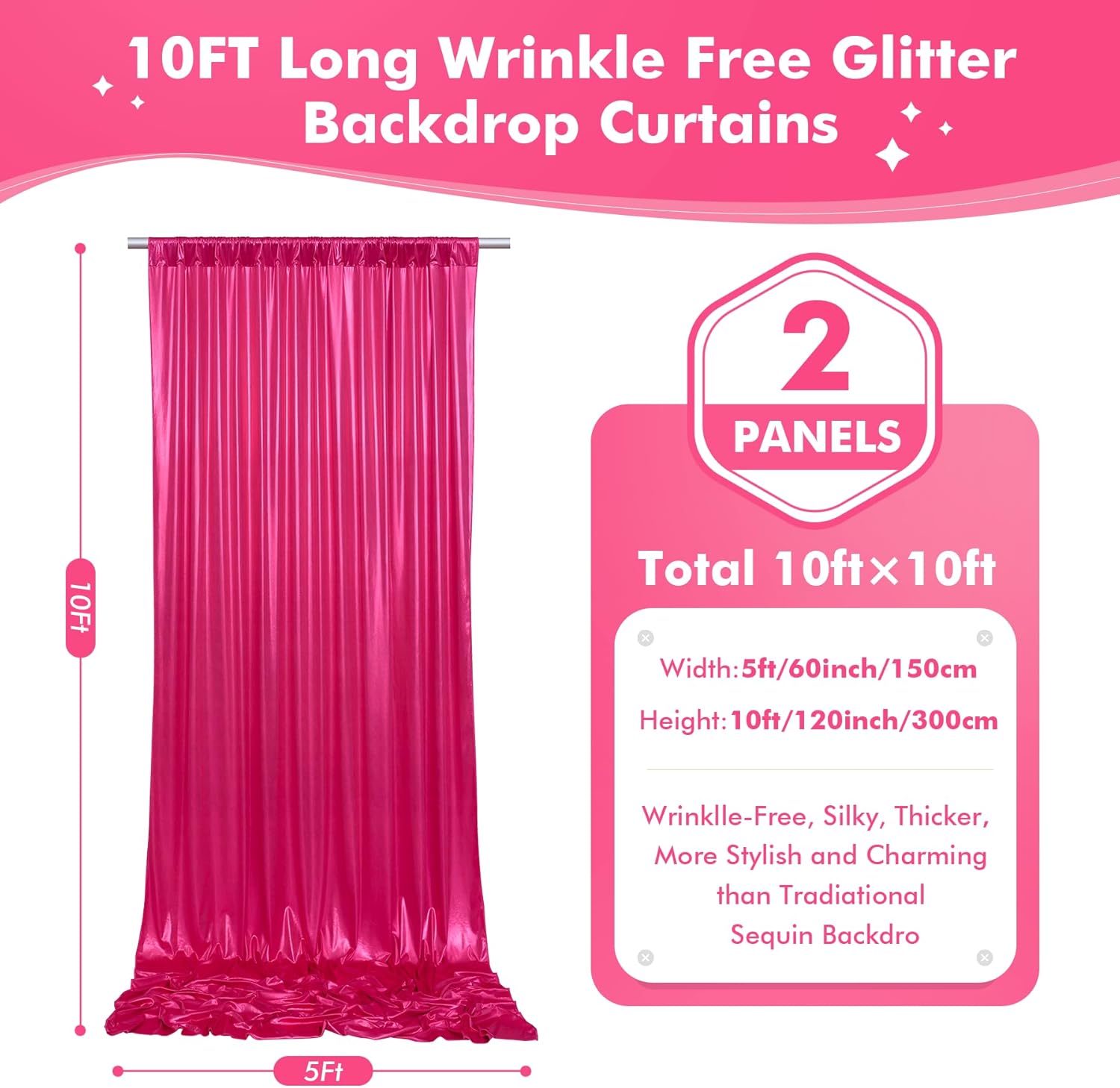- Wrinkle-Free Backdrop Curtain - Our 10ft hot pink sequin glitter party background curtain panels are made of wrinkle-free material, which could be used without ironing. Let you make unforgettable memories for your family or your friends.