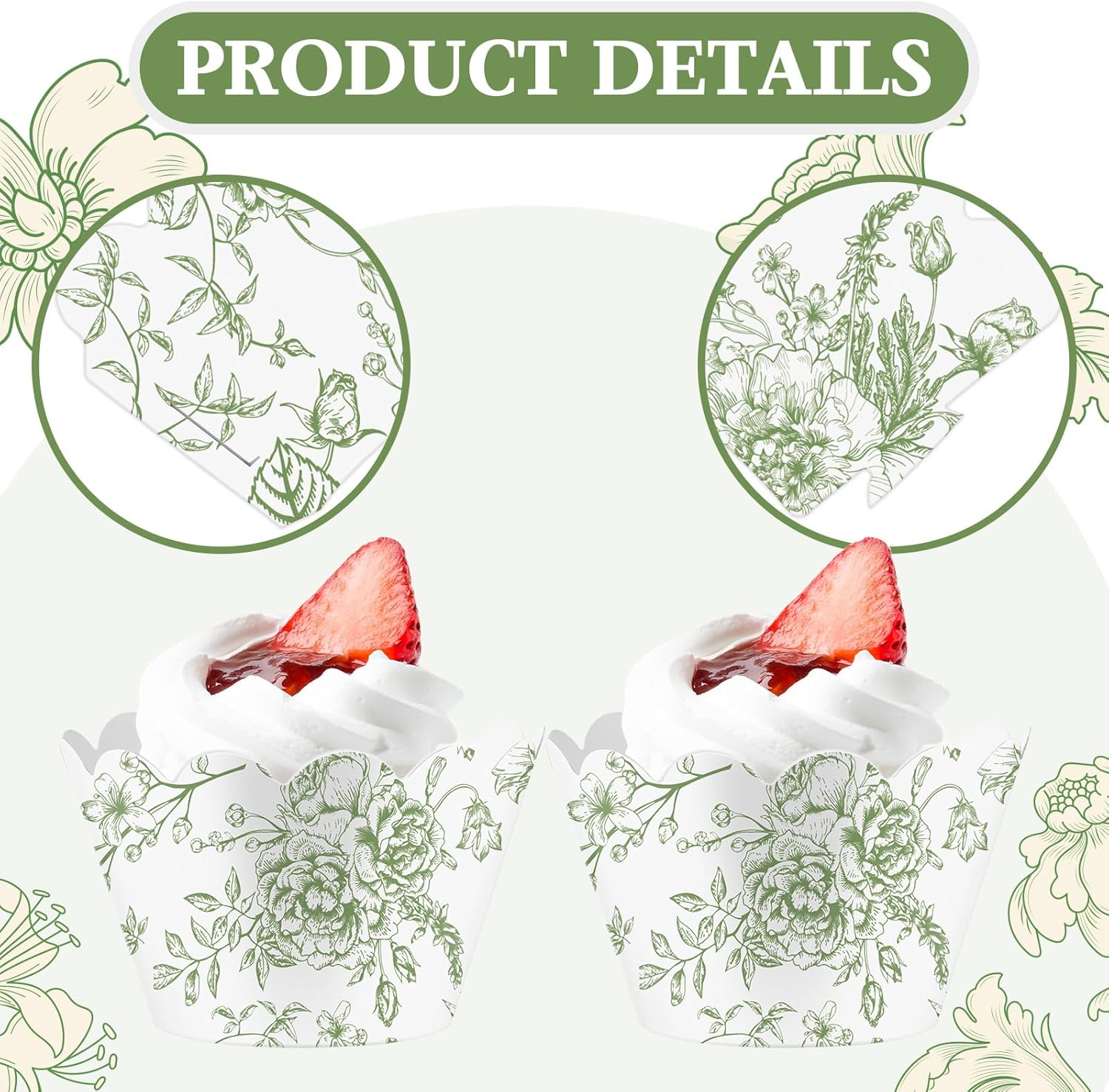 - Rich packaging and attractive design: This pack of 100 cupcake wrappers features a green floral pattern design that combines functionality and aesthetics to meet your daily baking needs, while adding a refined touch to your cupcake display