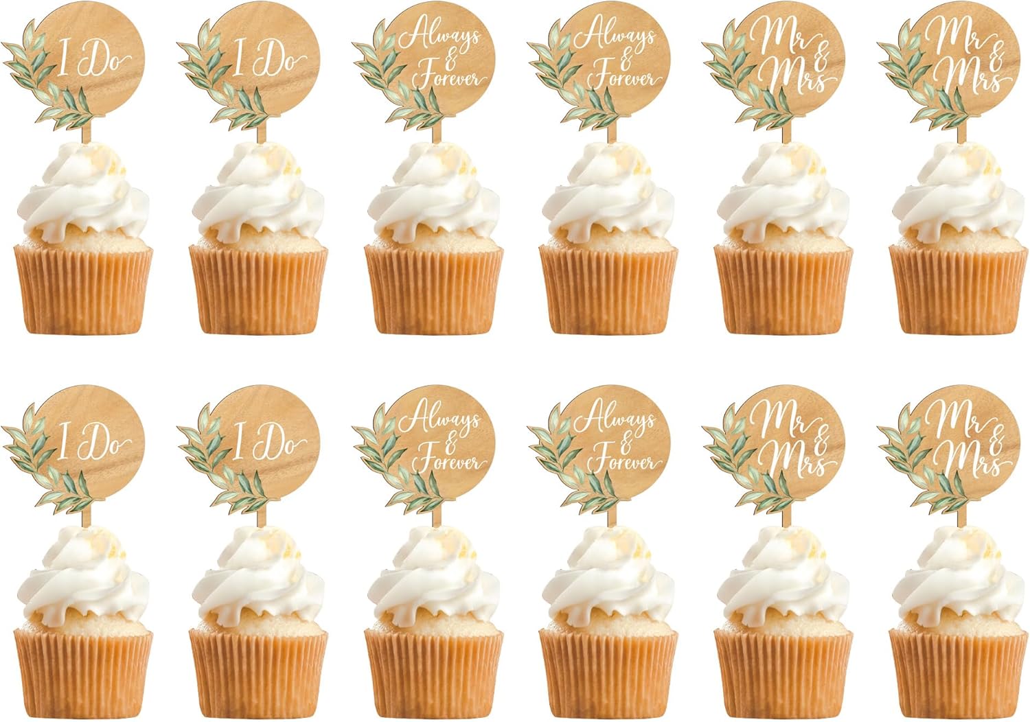 12 PCS Wedding Cupcake Toppers Green Mr & Mrs Wedding Cake Cupcake Decorations in Wood