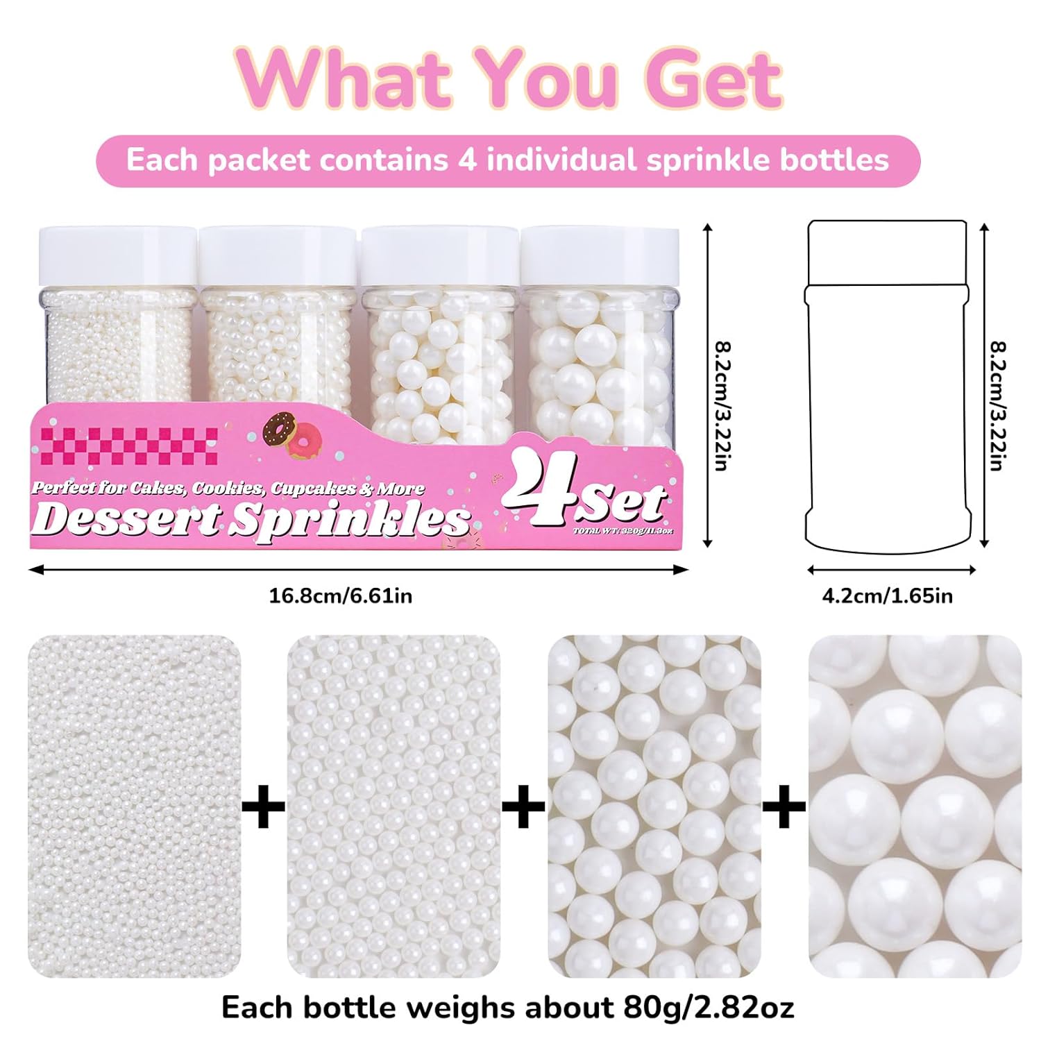 - 【Four Sizes in One Set】Includes 4 jars of edible pearl sprinkles in 2mm/4mm/7mm/10mm sizes, perfect for all baking needs, bake like a pro with just one set