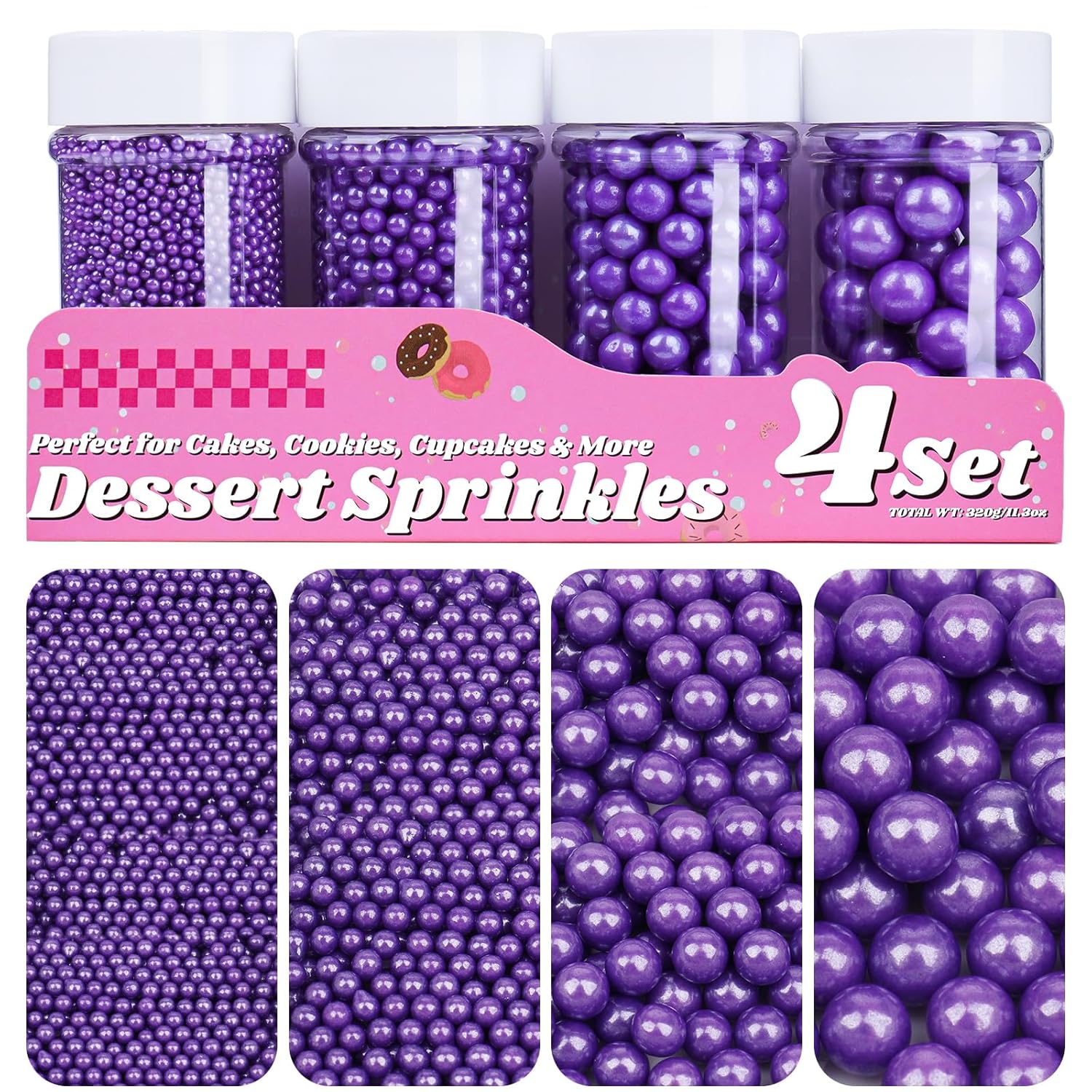 Purple Pearl Sprinkles for Cake Decorating, 11.3 Oz Edible Pearls Sugar 4 Sizes Gift Box Set for Baking Cookie Ice Cream Cupcake Toppings