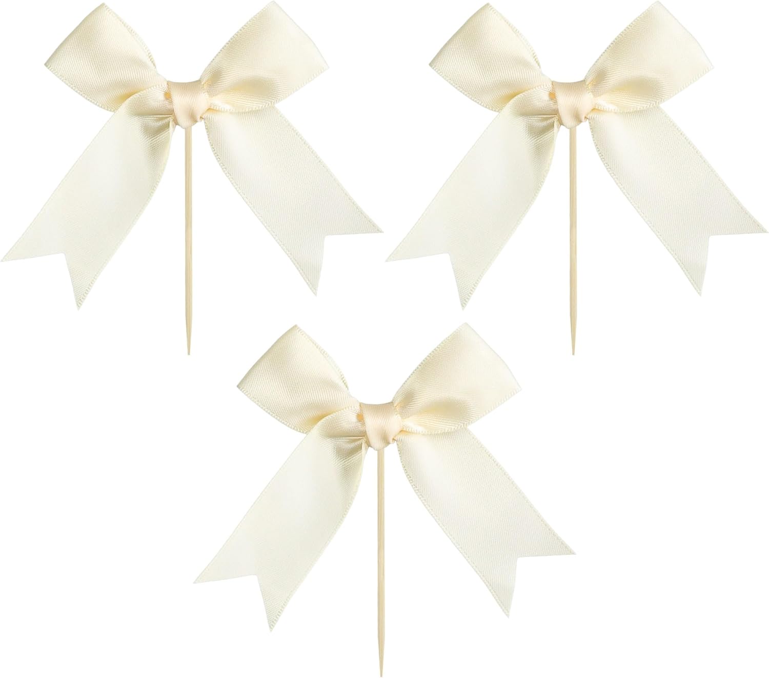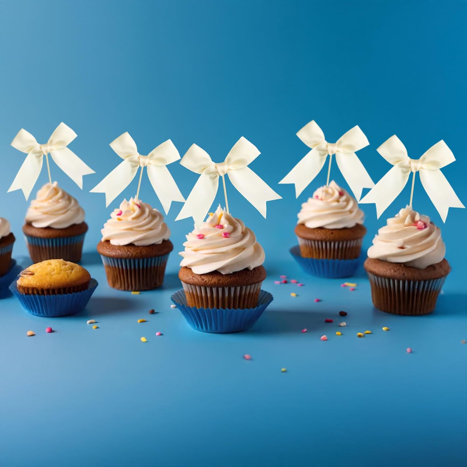 - --Premium Material: These Bow Cupcake Toppers are made of high quality polyester satin ribbon, very safe to put them on cakes, cupcakes, ice cream, fruits, pie, dessert, cheese or any dish and food appetizer you want to decorate bow theme party decorations.