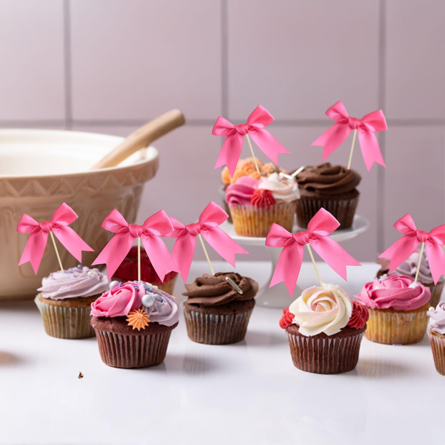 - --Premium Material: These Bow Cupcake Toppers are made of high quality polyester satin ribbon, very safe to put them on cakes, cupcakes, ice cream, fruits, pie, dessert, cheese or any dish and food appetizer you want to decorate bow theme party decorations.