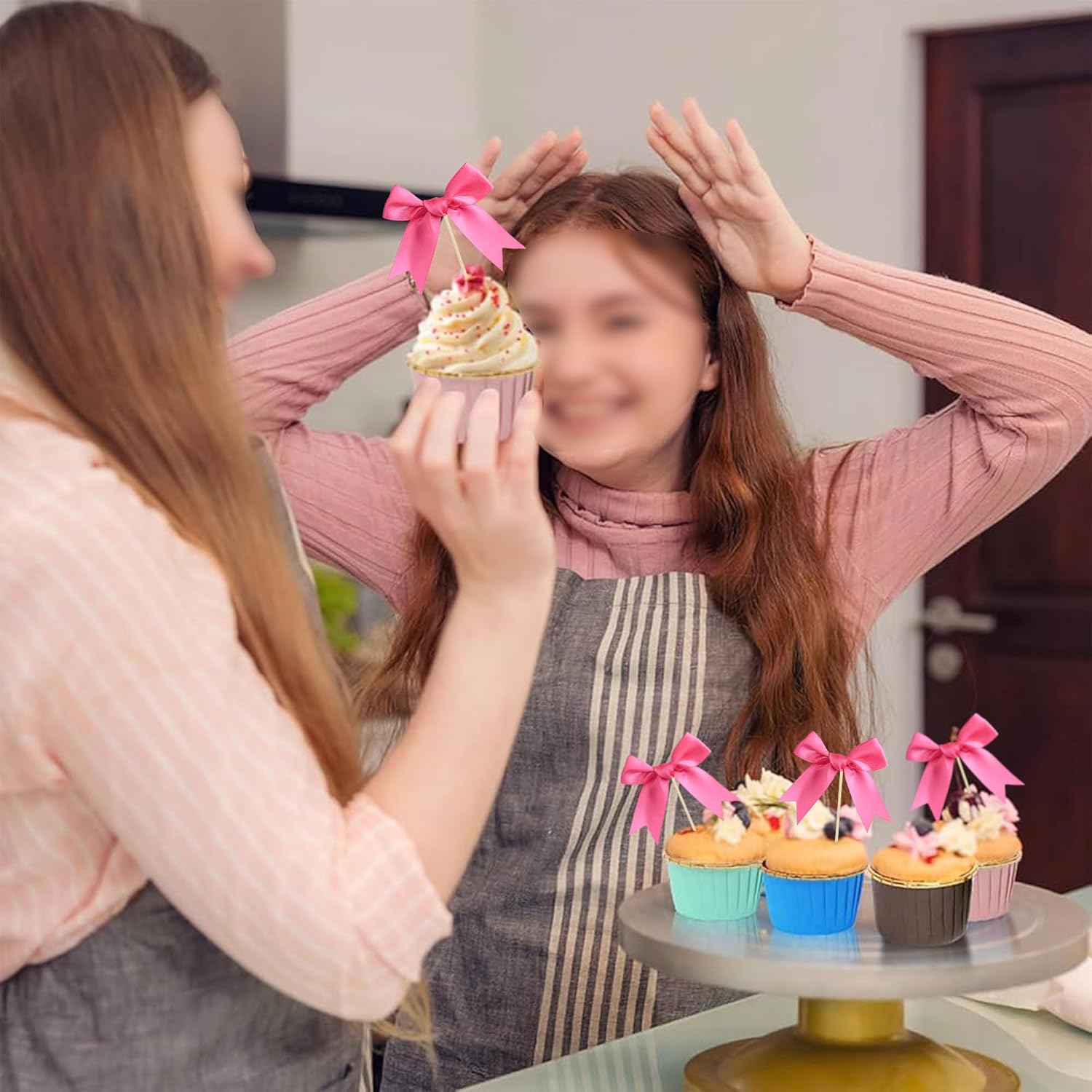 - --Package included: 24Pcs Bow Cupcake Toppers. Comes with assembled, so you can insert into your cake directly, which make your cake more interesting.
