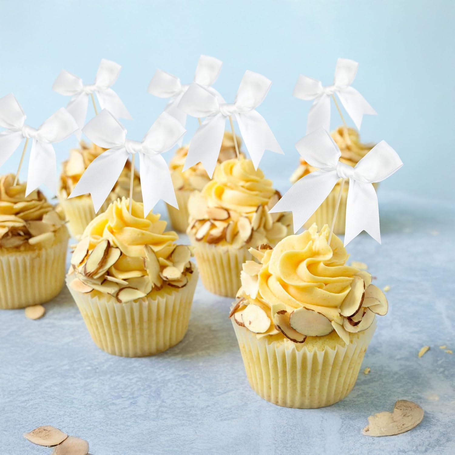 - 【Upgrade Quality】: These Bow Cupcake Toppers are made of high quality polyester satin ribbon. it is very so safe to be suitable for cakes, cookies, cakes, fruits, cookies, ice cream and other desserts.