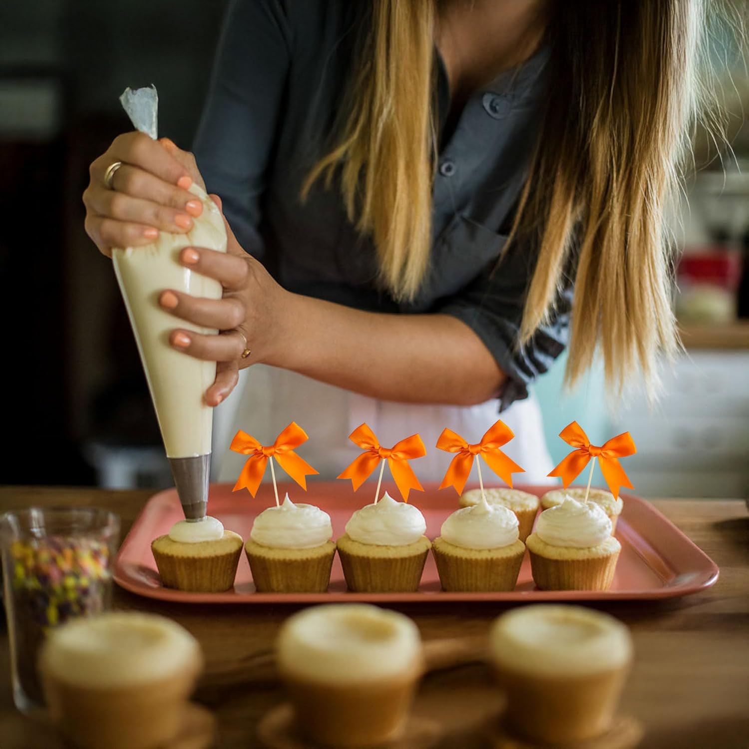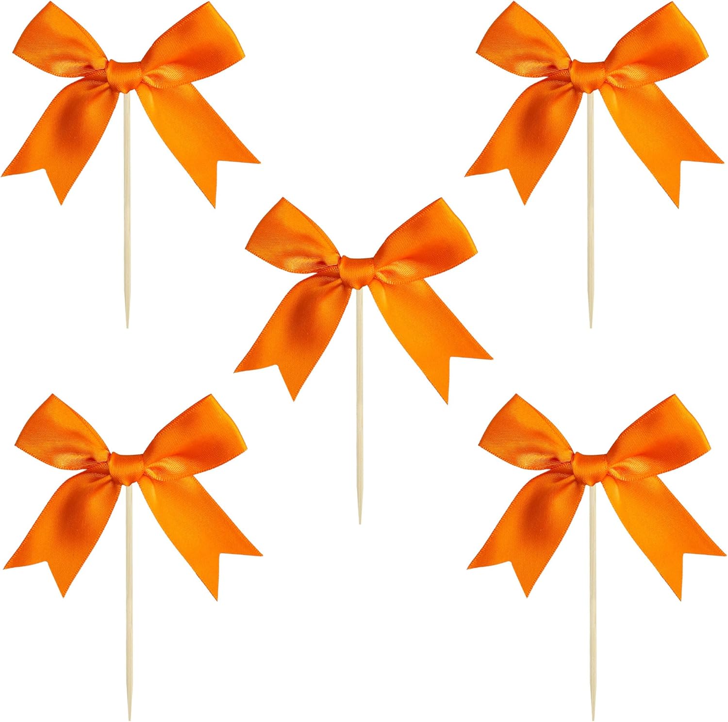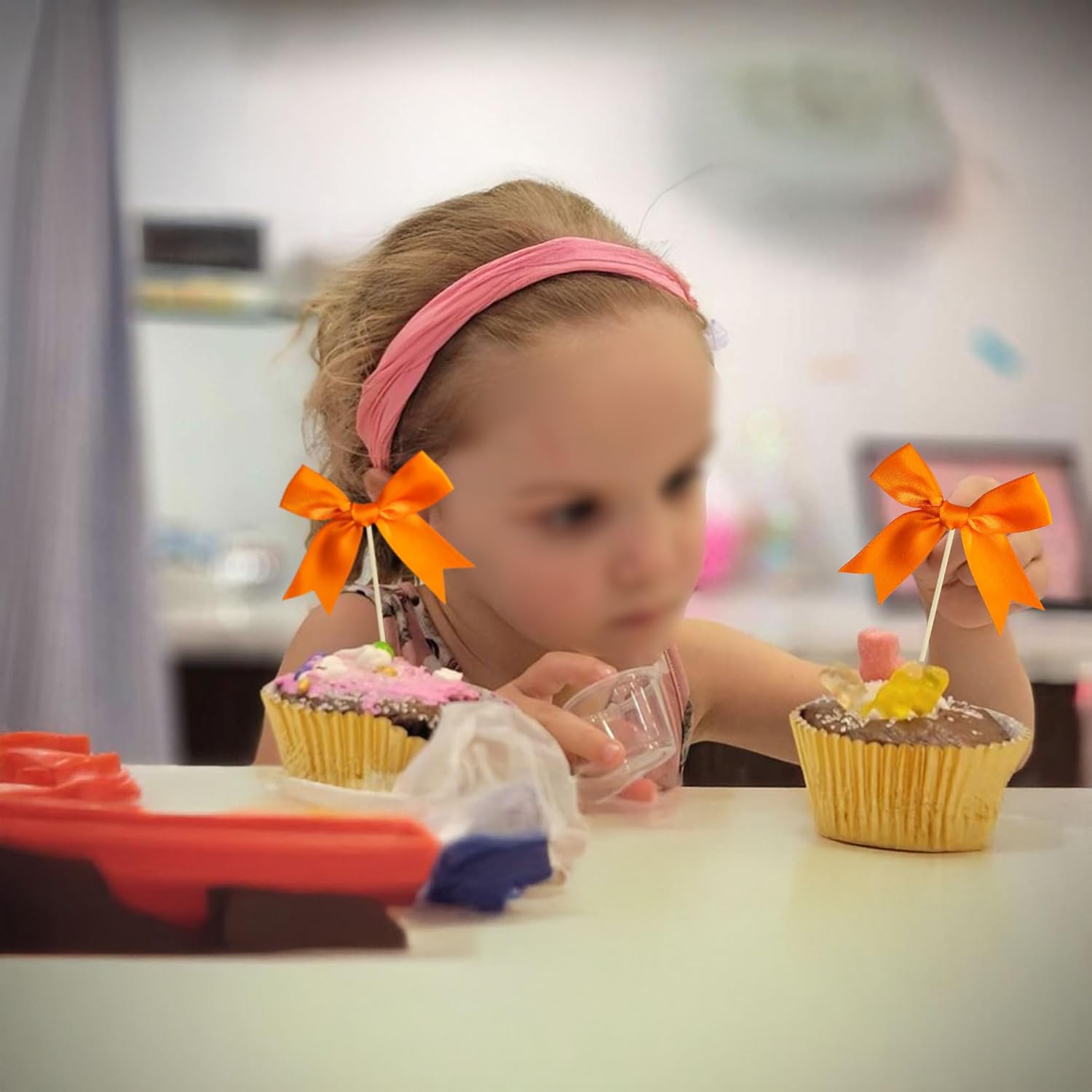 Ephlyn 24Pcs Bow Cupcake Toppers Bow Cake Topper Birthday Decorations Mini Bowknot Cupcake Picks for Coquette Theme Party Decoration Bachelorette Bridal Engagement Wedding Party Supplies Orange