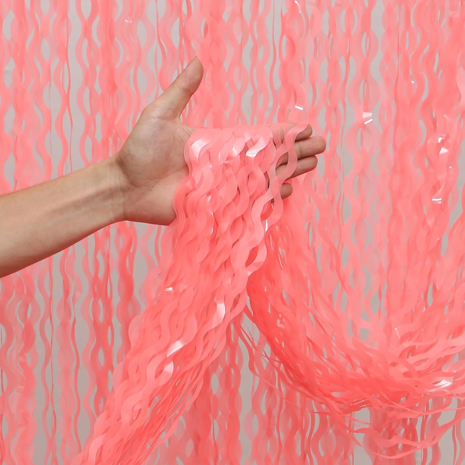 - 【LATEST Shiny Surface +Wavy Shape Tinsel Backdrop】The watermelon red foil curtain backdrop is made of aluminium foil with shiny surface +wavy shape, good for adding sparkle as decorations for parties