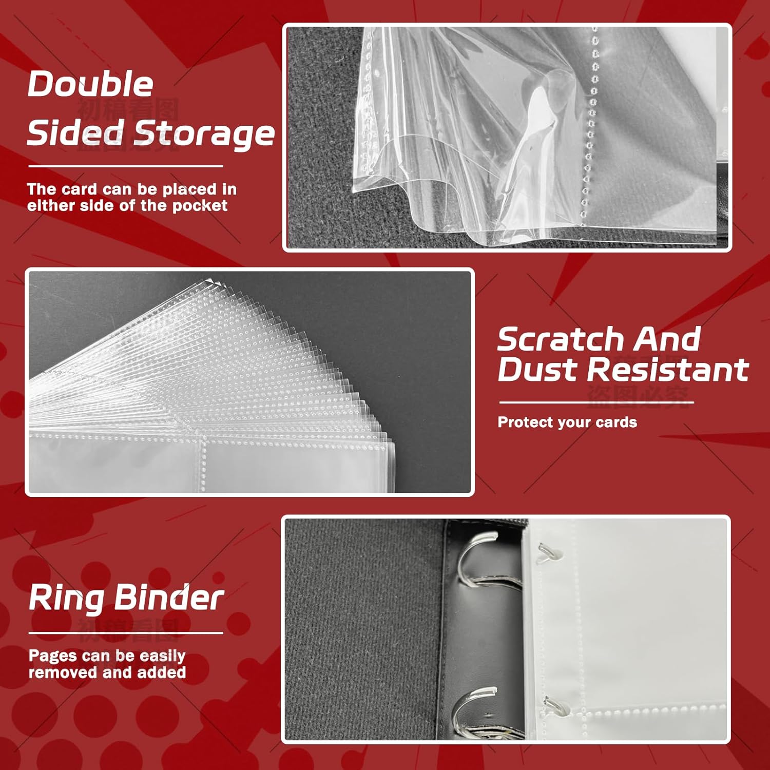 - 【440 Extra Large Capacity】 The collector card binder contains 55 removable pages, each featuring 4 pockets on both sides, and can hold 440 cards. Perfect for showcasing your treasured cards to friends at any time.
