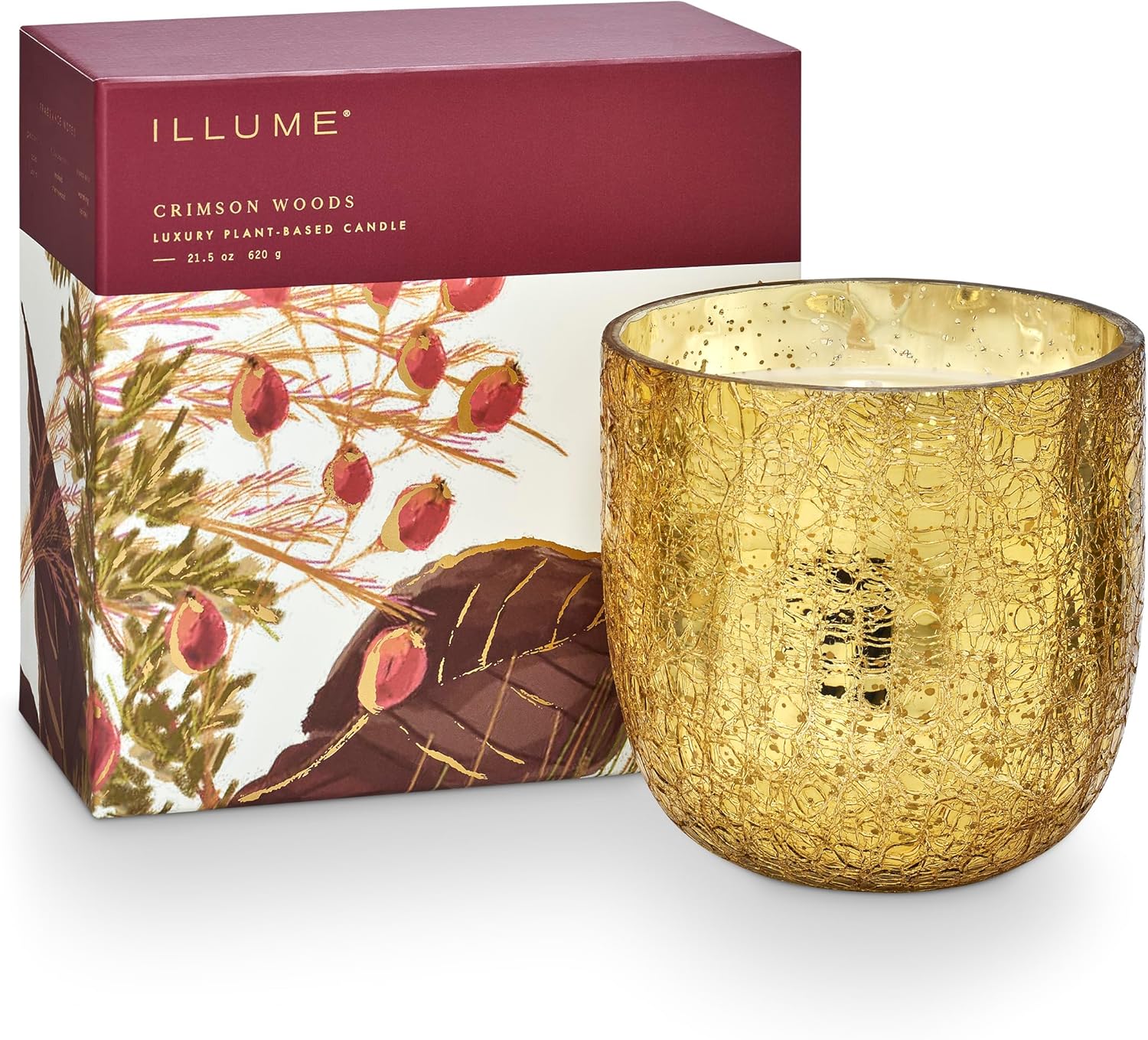 Illume Crimson Woods Large Boxed Crackle Glass Candle
